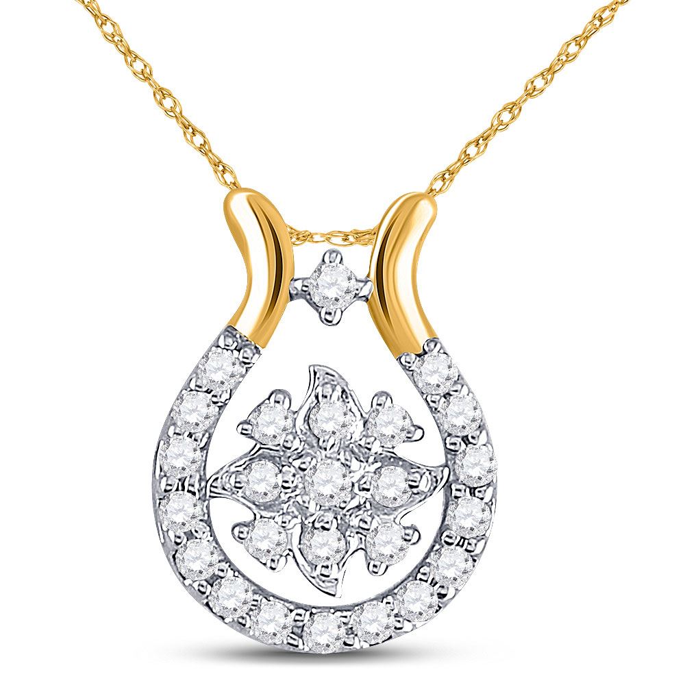 10kt Yellow Gold Womens Round Diamond Cluster Pendant 1/8 Cttw