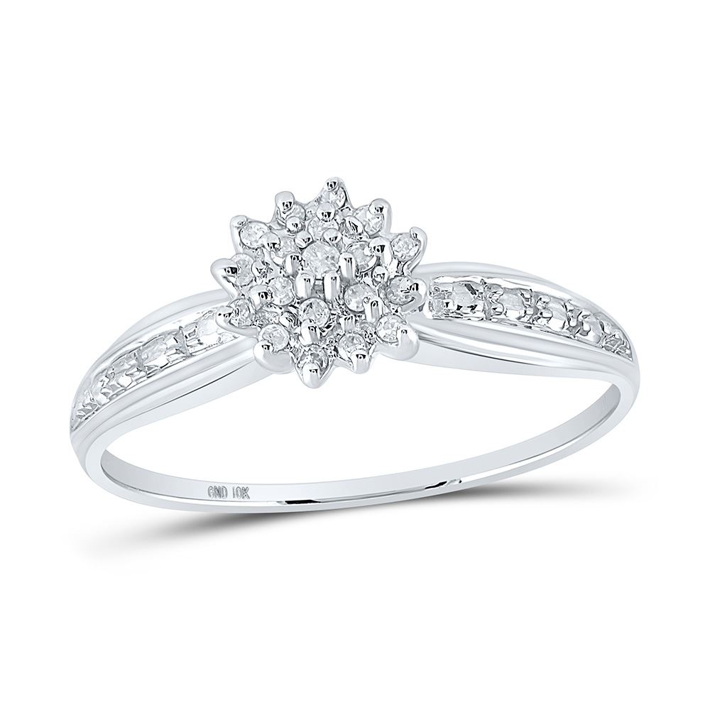 10kt White Gold Womens Round Diamond Cluster Ring 1/10 Cttw
