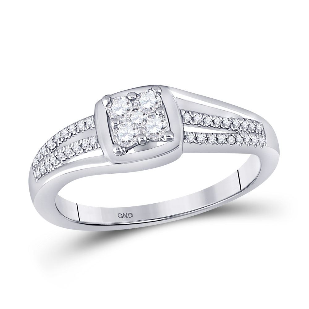 10kt White Gold Womens Round Diamond Cluster Ring 1/4 Cttw