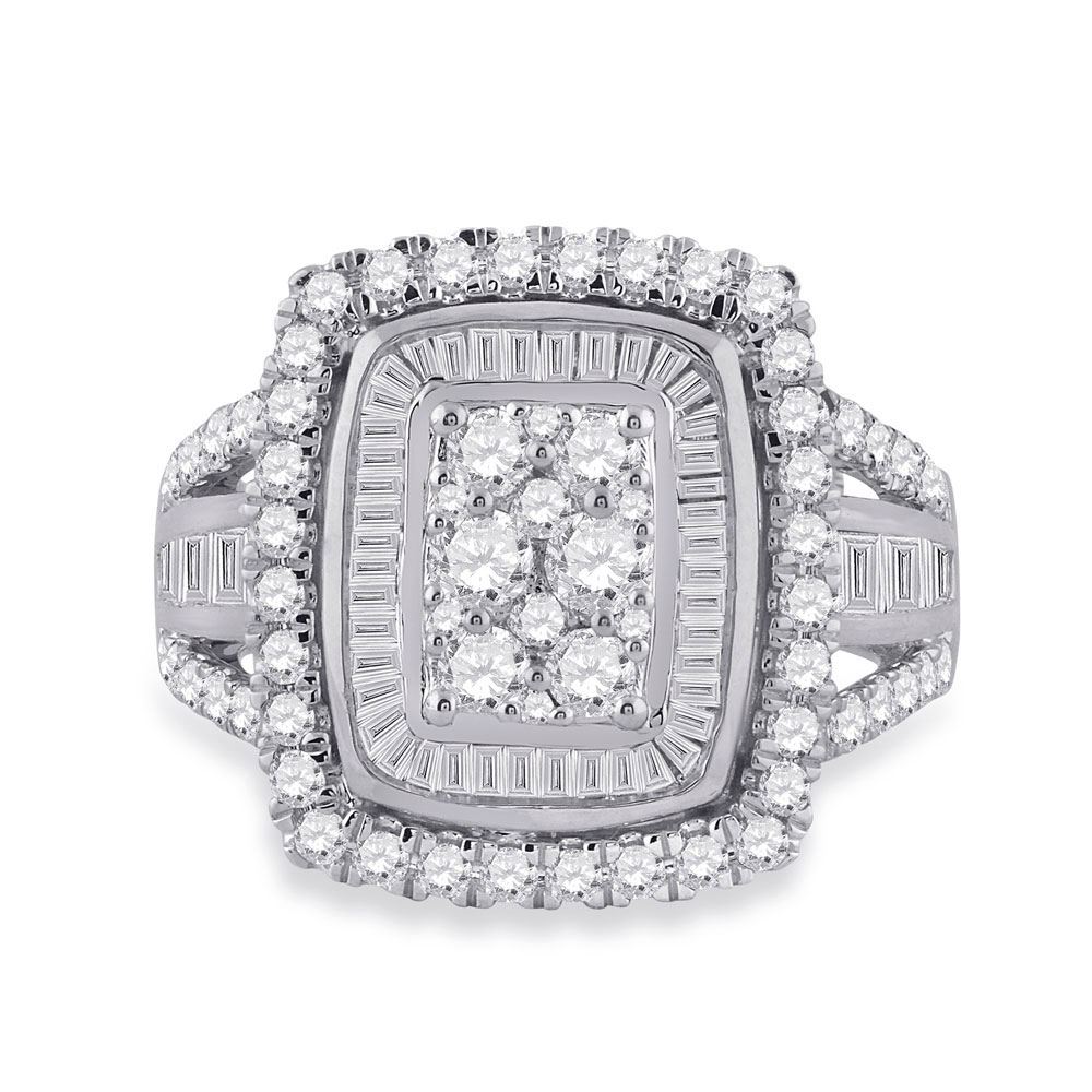 table {border-collapse: collapse; width: 100%; font-size: 1.2em; border: 1px lightgrey solid;} th, td {text-align: left; padding: 5px;} tr:nth-child(odd) {background-color: #efefee;} tr {border-bottom: 1px lightgrey solid;} Metal Type14kt White Gold Item NumberGDI855427 StyleClustersRing Size7Carats Total Weight *1 & 7/8 Ct.t.w.Primary Gem TypeDiamondPrimary Gem ShapeRoundPrimary Gem Color / ClarityG-H / I1-I2Gem 2 TypeDiamondGem 2 ShapeBaguetteGem 2 Color / ClarityG-H / I1Gram Weight9.27 grams (approximately)