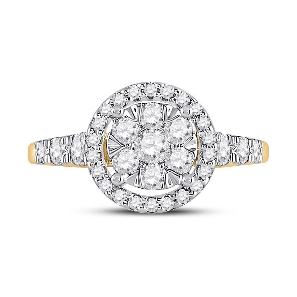 10kt Yellow Gold Womens Round Diamond Cluster Ring 3/4 Cttw