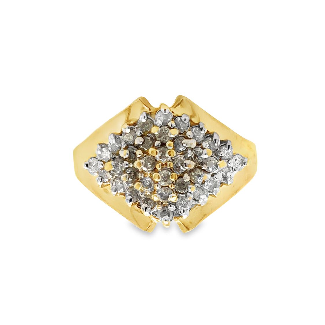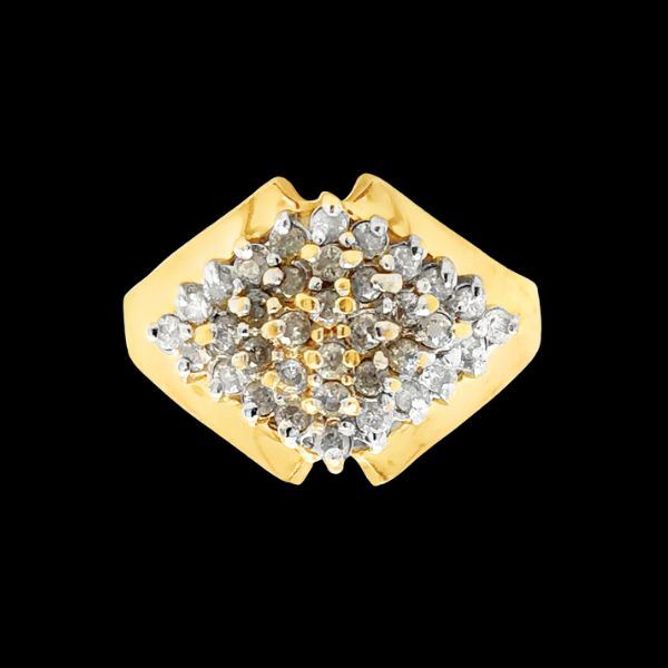 DESCRIPTION DETAIL: 14k Chevron Diamond Cluster Ring, Sz 6 US, 4.0 grams