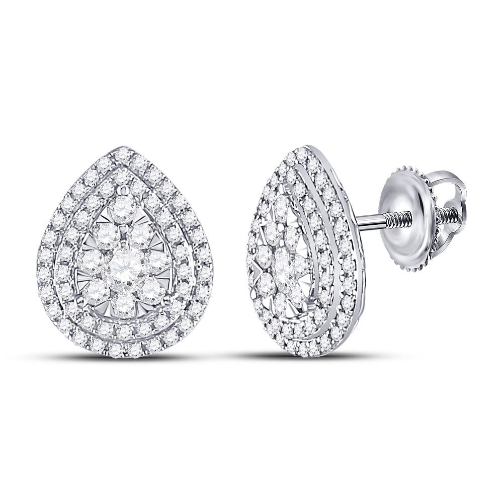 14kt White Gold Womens Round Diamond Cluster Teardrop Earrings 1 Cttw