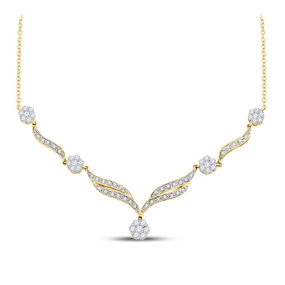14kt Yellow Gold Womens Round Diamond Cluster Y-Shape Necklace 3/4 Cttw