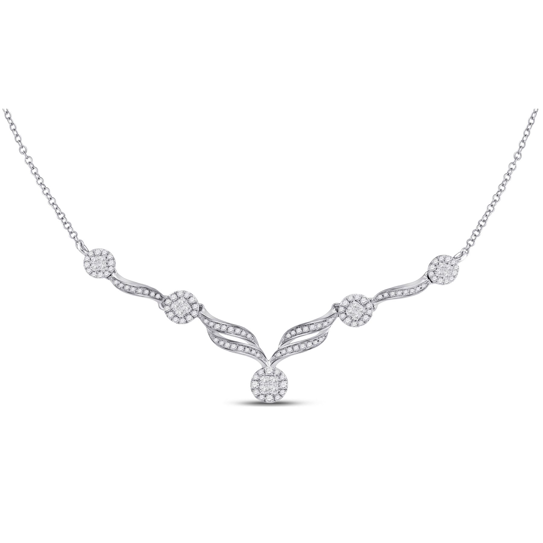 REF-136G4M - SKU: GD111242 ---- Diamond Cocktail Cluster Necklace 1.00 Cttw 14kt White Gold