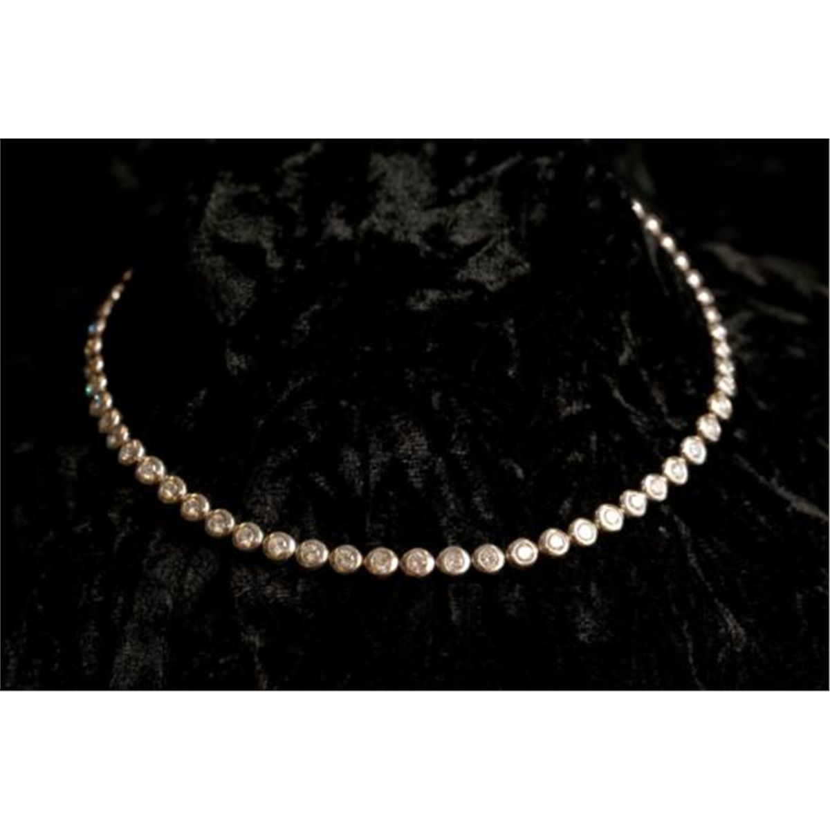 Diamond Collarette set in 18kt white gold. Individual rub over collets set with a total of 62 - 4.0mm bright cut diamonds. T.D.W. approximately 12.0 - 12.5cts Gross weight 39.6grams CL0005