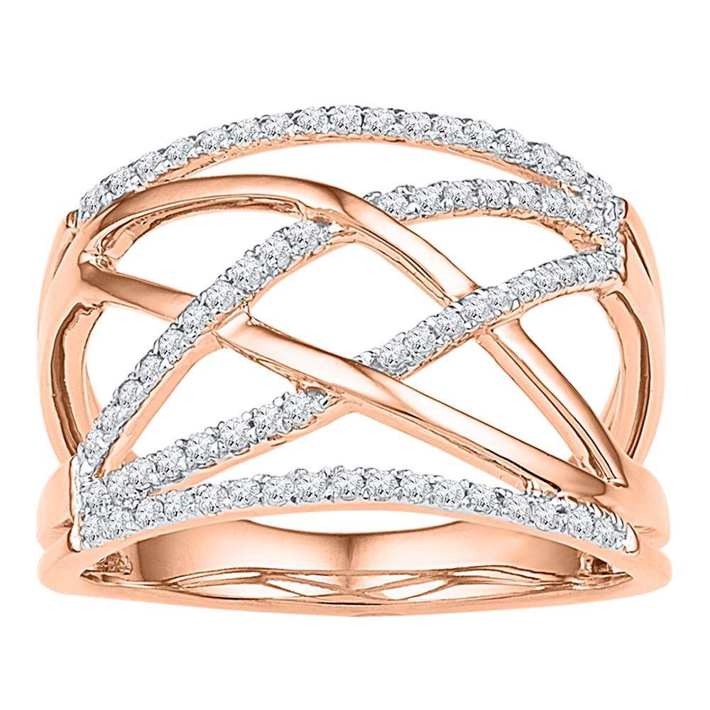 10kt Rose Gold Womens Round Diamond Crisscross Crossover Band Ring 1/3 Cttw
