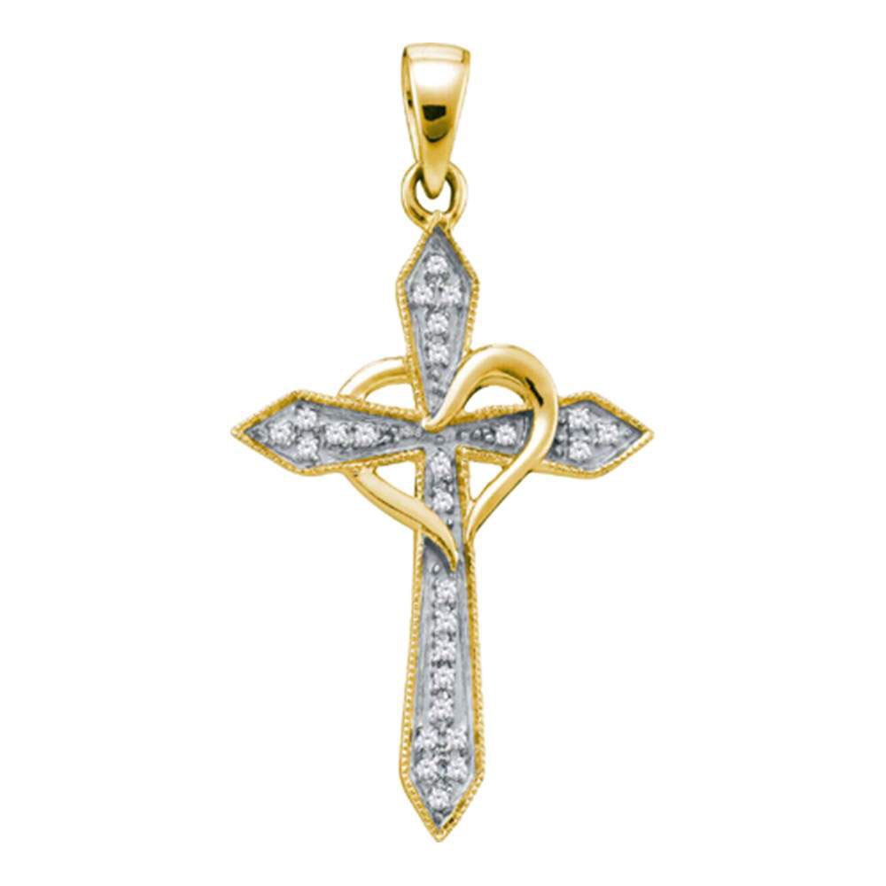 REF-9N1F - SKU: GD54820 ---- Diamond Cross Heart Pendant 1/10 Cttw 10kt Yellow Gold