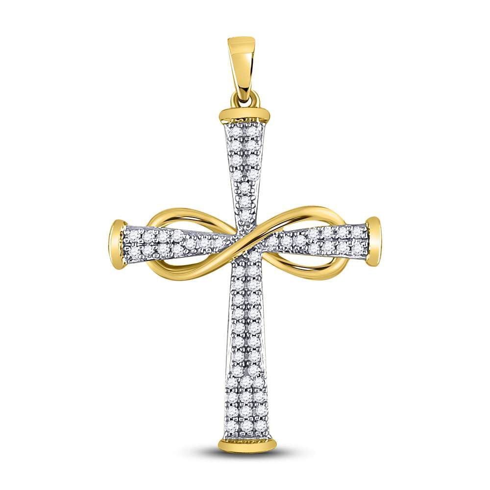 REF-14F5N - SKU: GD120588 ---- Diamond Cross Infinity Pendant 1/5 Cttw 10kt Yellow Gold