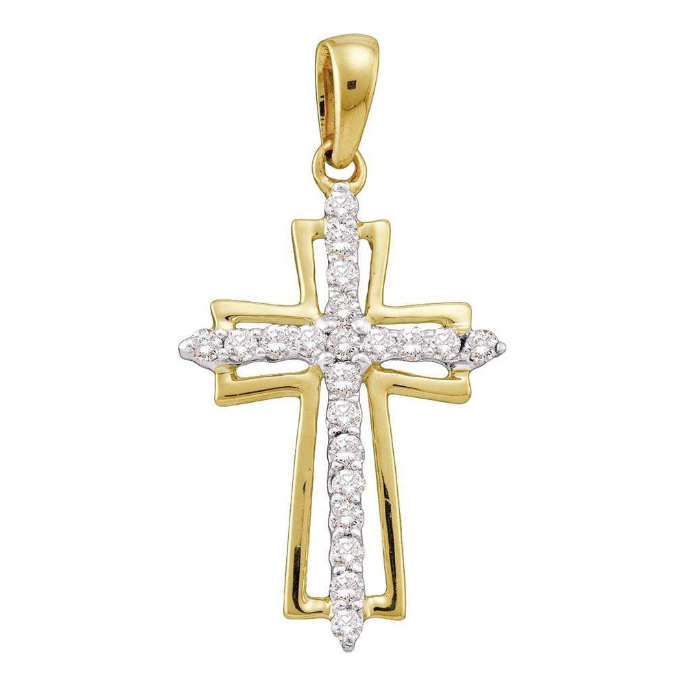REF-14M5X - SKU: GD48793 ---- Diamond Cross Outline Religious Pendant 1/4 Cttw 10kt Yellow Gold