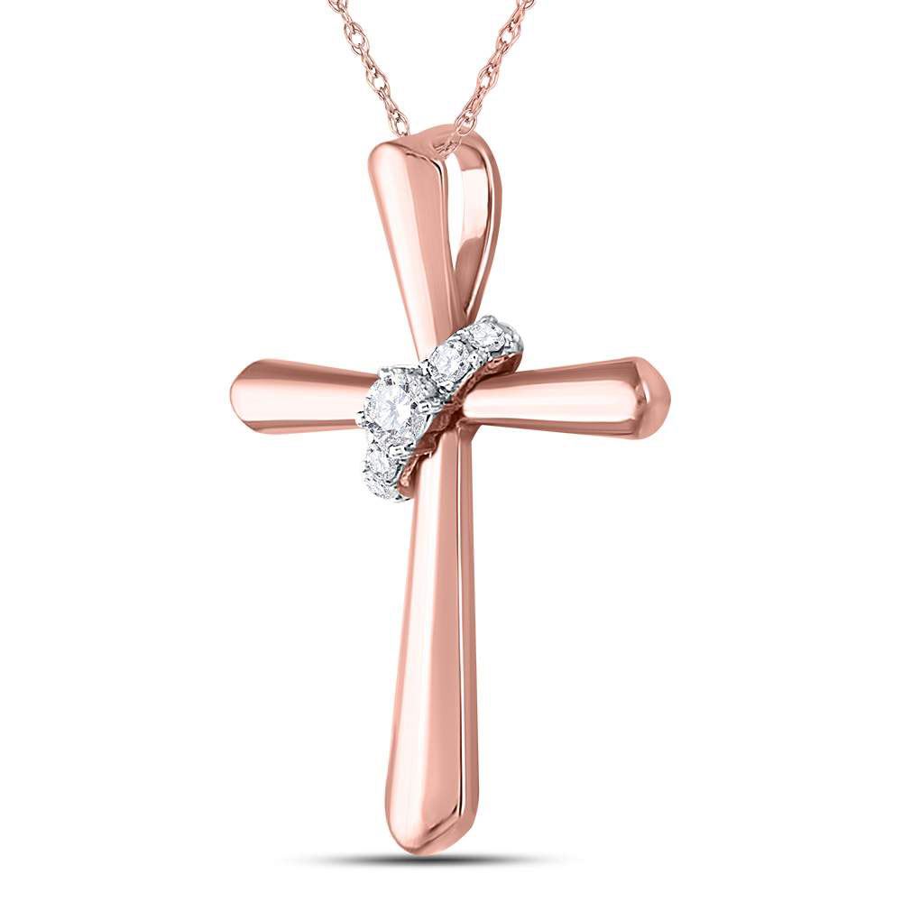 14kt Rose Gold Womens Round Diamond Cross Pendant 1/10 Cttw