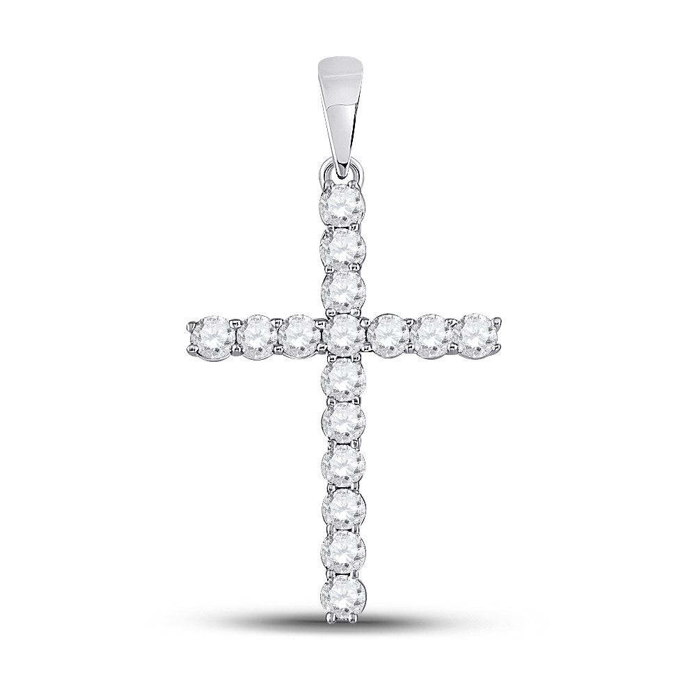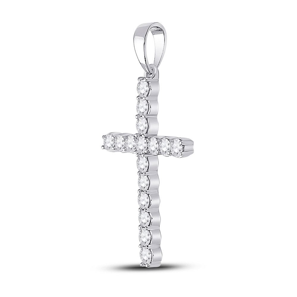 10kt White Gold Womens Round Diamond Cross Pendant 1/2 Cttw