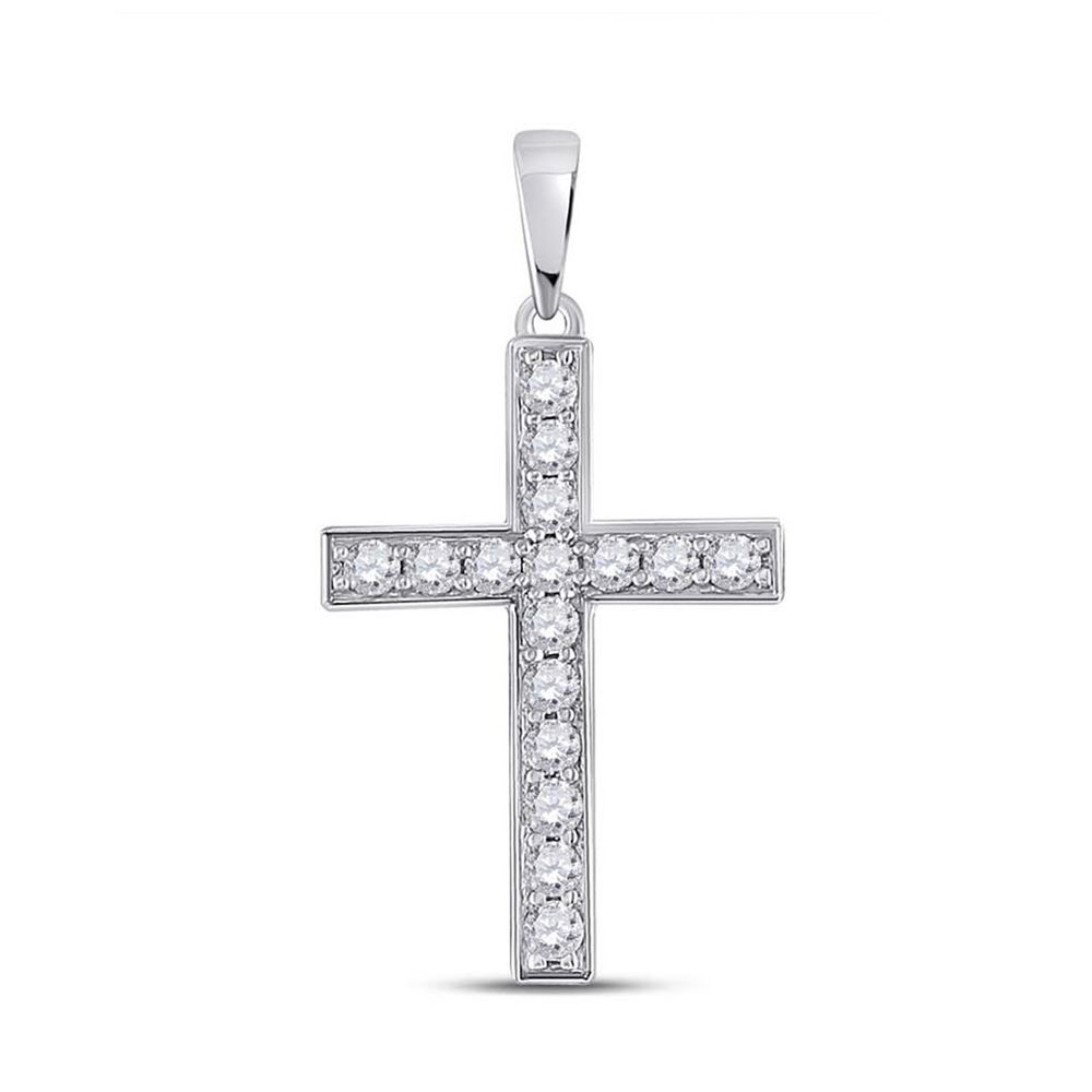 10kt White Gold Womens Round Diamond Cross Pendant 1/3 Cttw