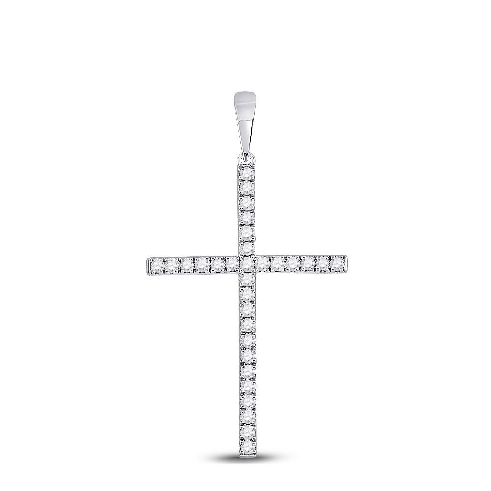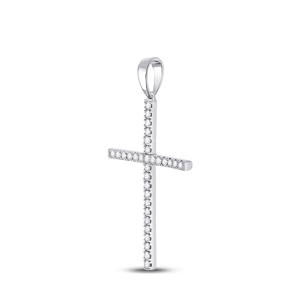 10kt White Gold Womens Round Diamond Cross Pendant 1/4 Cttw