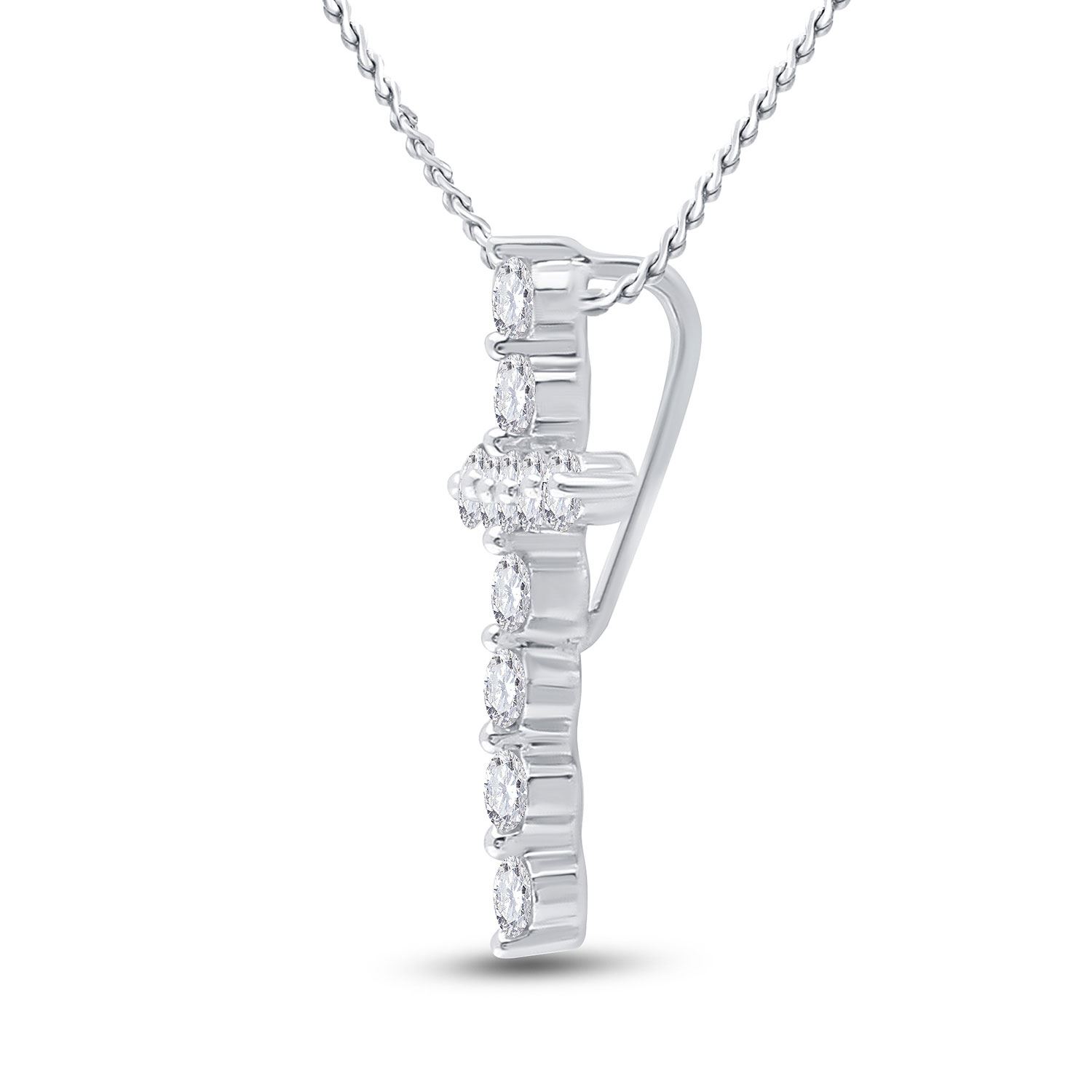 14kt White Gold Womens Round Diamond Cross Pendant 1/4 Cttw