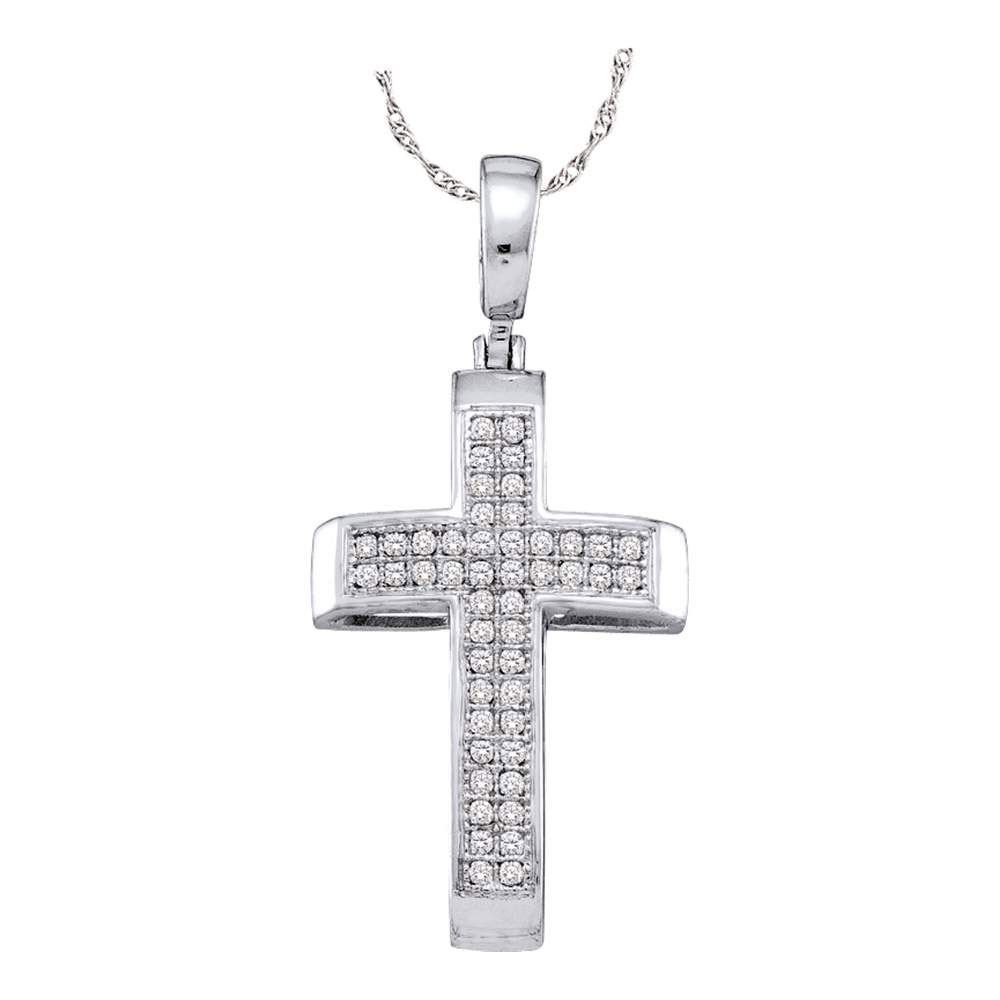 10kt White Gold Womens Round Diamond Cross Pendant 1/6 Cttw