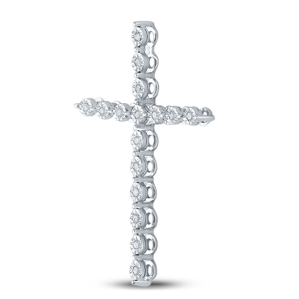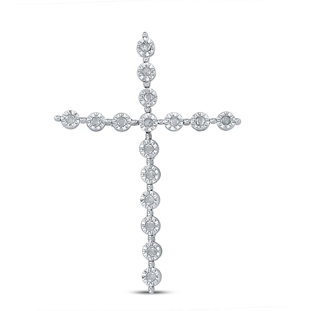 Sterling Silver Womens Round Diamond Cross Pendant 1/8 Cttw