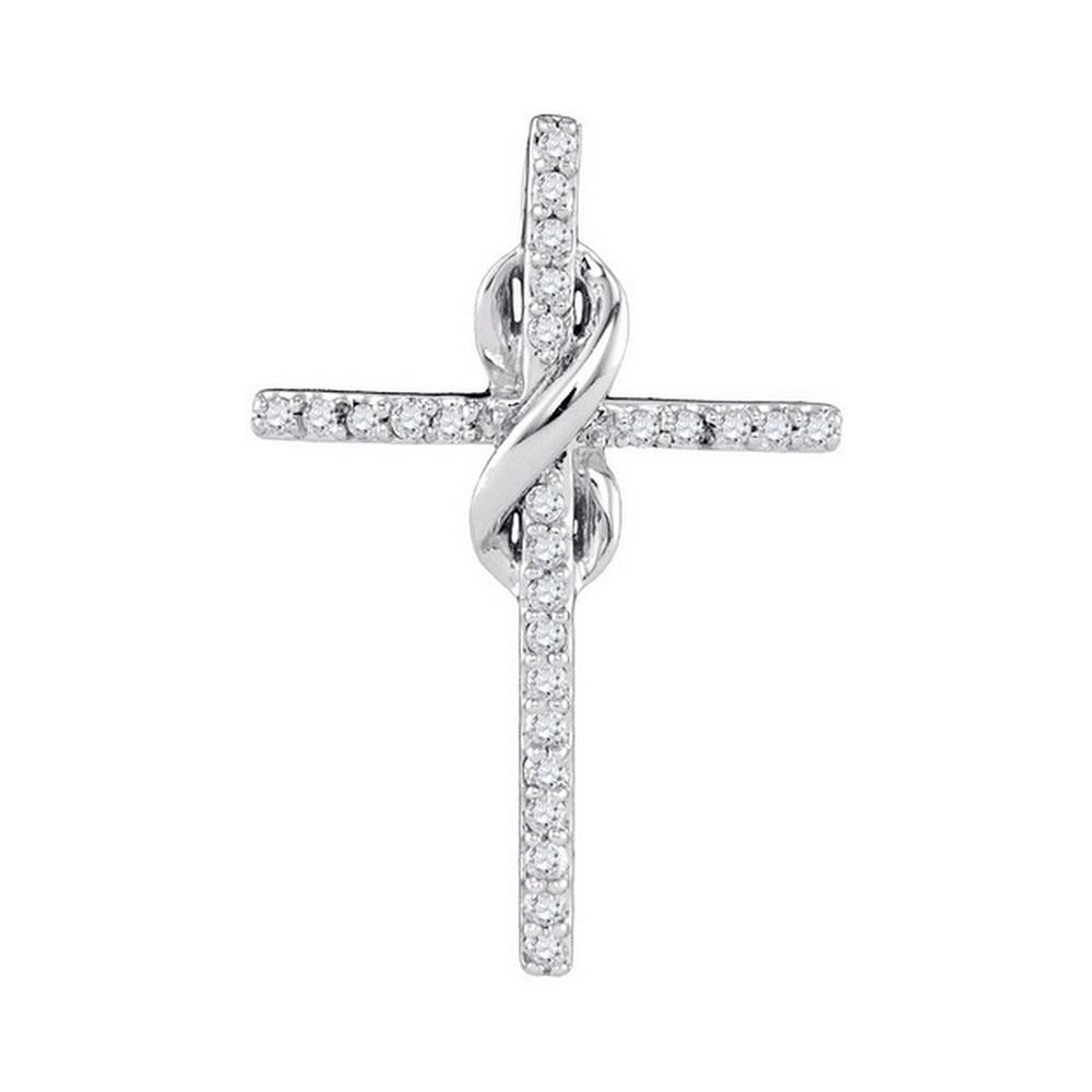 10kt White Gold Womens Round Diamond Cross Religious Pendant 1/4 Cttw