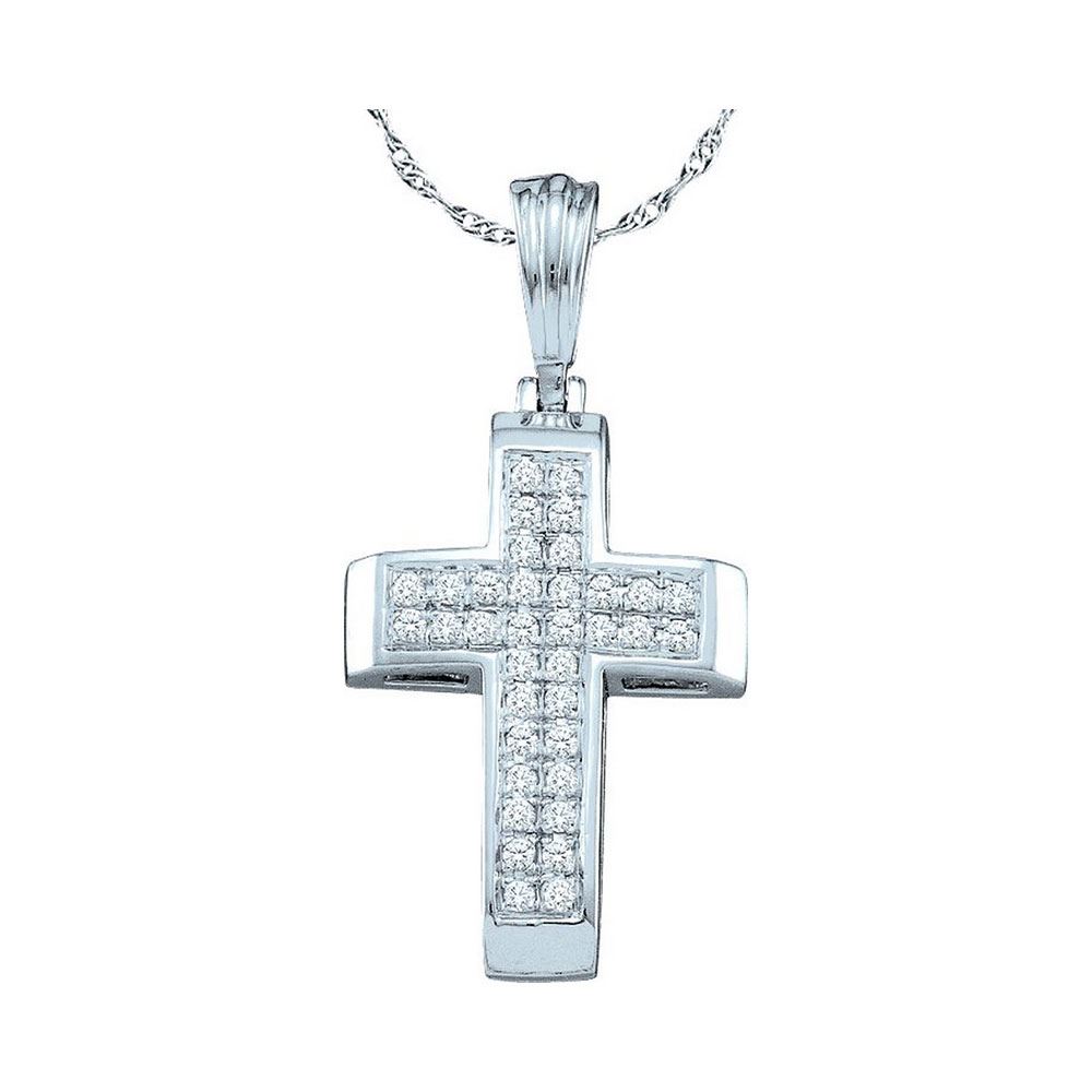 REF-13R6K - SKU: GD50254 ---- Diamond Cross Religious Pendant 1/8 Cttw 10kt White Gold