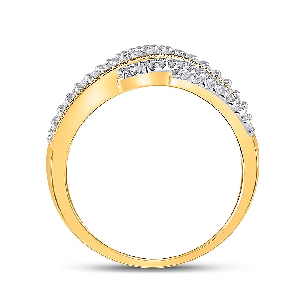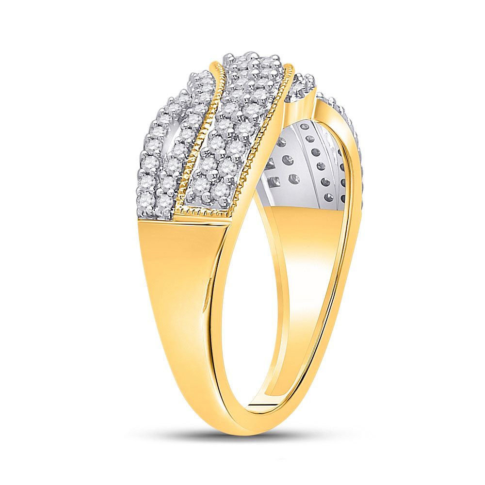 10kt Yellow Gold Womens Round Diamond Crossover Band Ring 1/2 Cttw