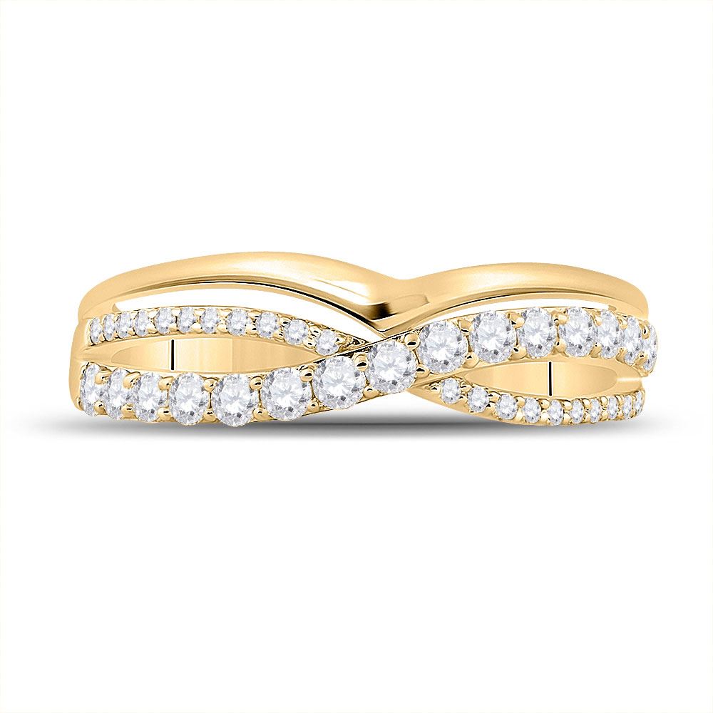 10kt Yellow Gold Womens Round Diamond Crossover Band Ring 1/2 Cttw
