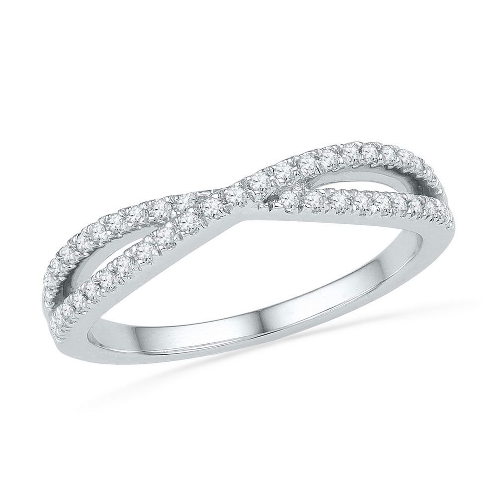 10kt White Gold Womens Round Diamond Crossover Band Ring 1/4 Cttw
