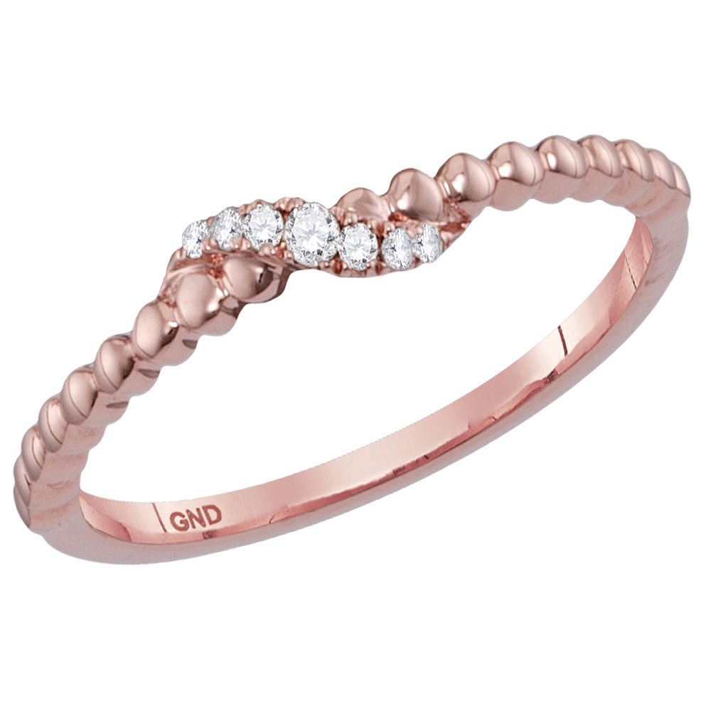 14kt Rose Gold Womens Round Diamond Crossover Stackable Band Ring 1/20 Cttw