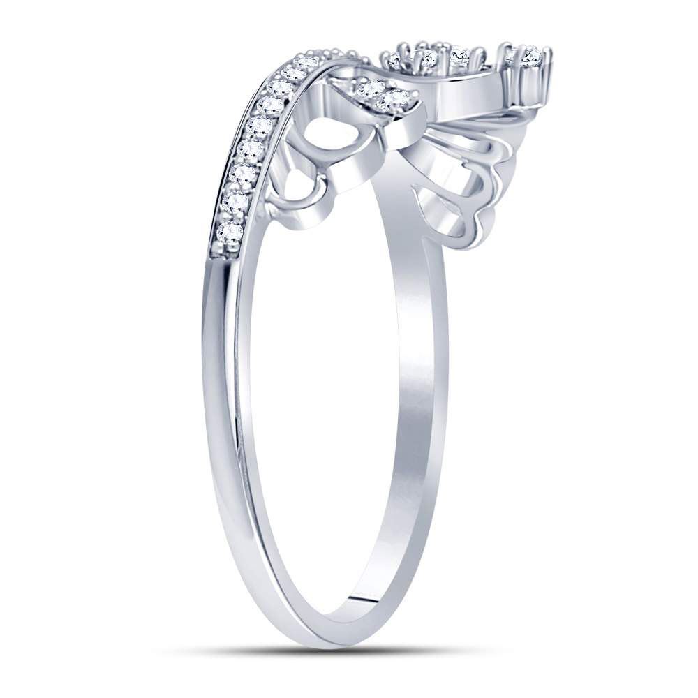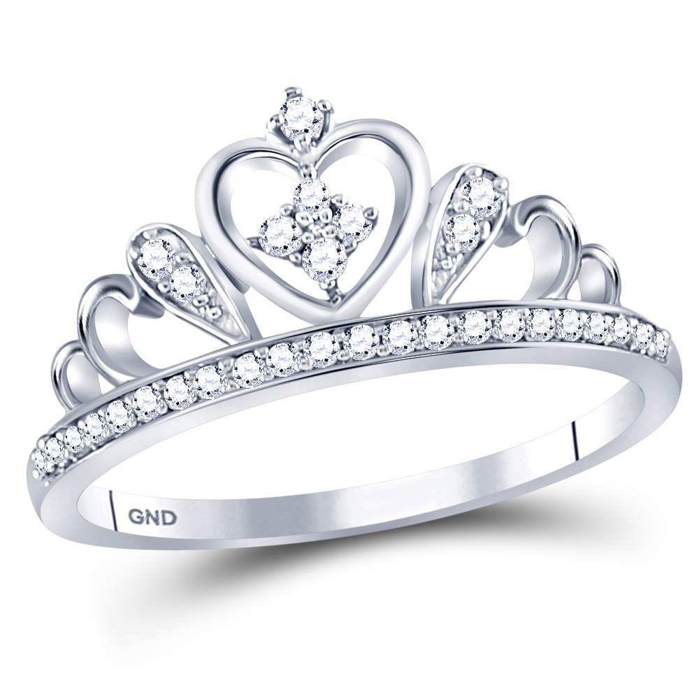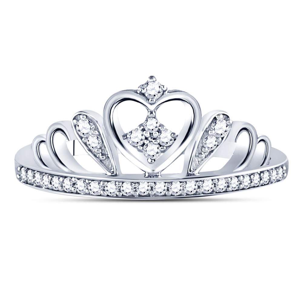 Sterling Silver Womens Round Diamond Crown Tiara Heart Ring 1/6 Cttw