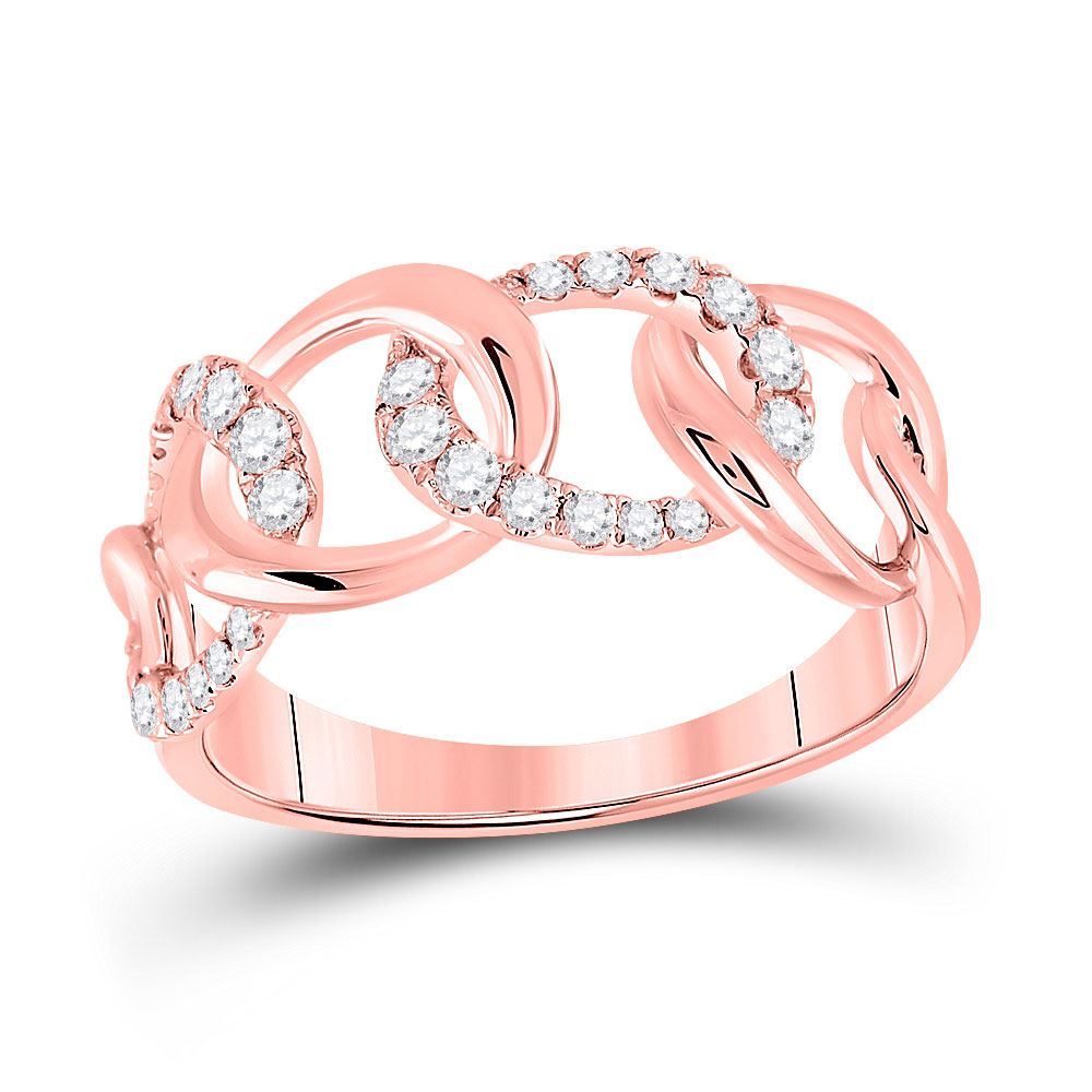 14kt Rose Gold Womens Round Diamond Curb Link Fashion Ring 1/3 Cttw