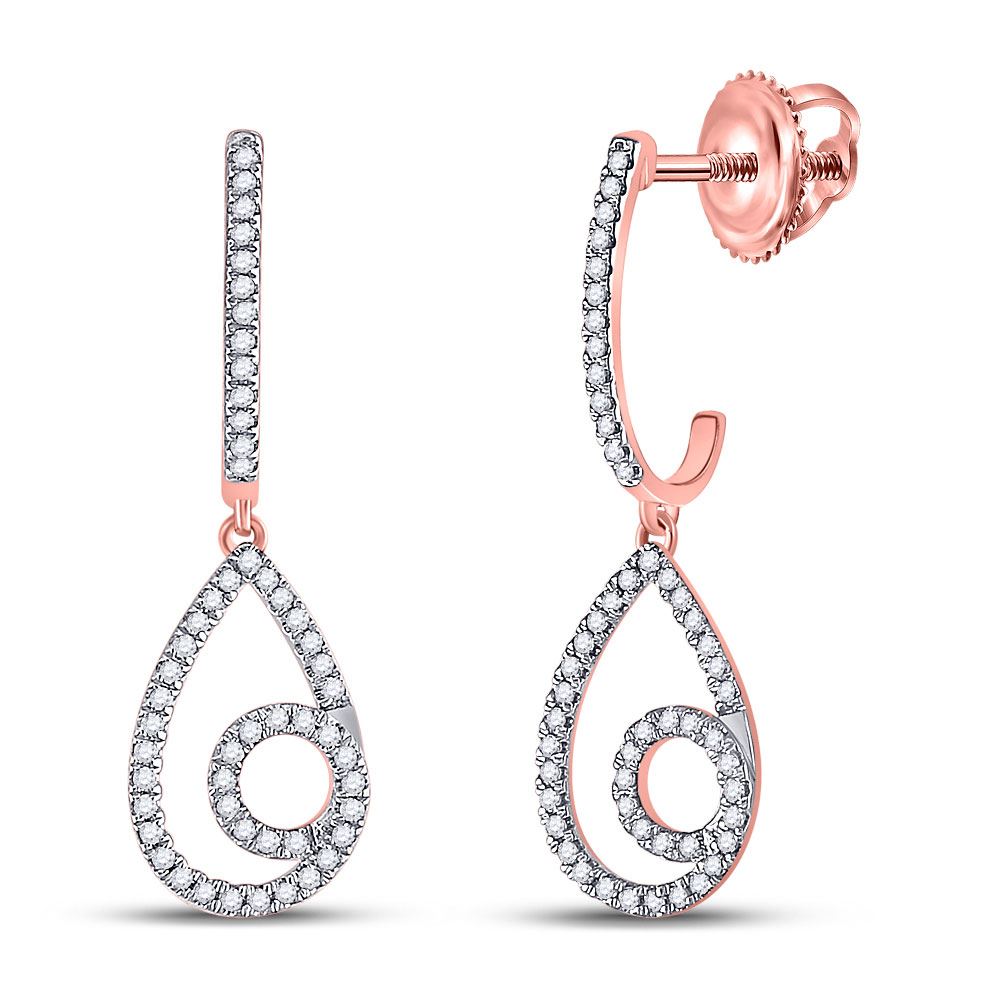 10kt Rose Gold Womens Round Diamond Curl Teardrop Dangle Earrings 1/4 Cttw