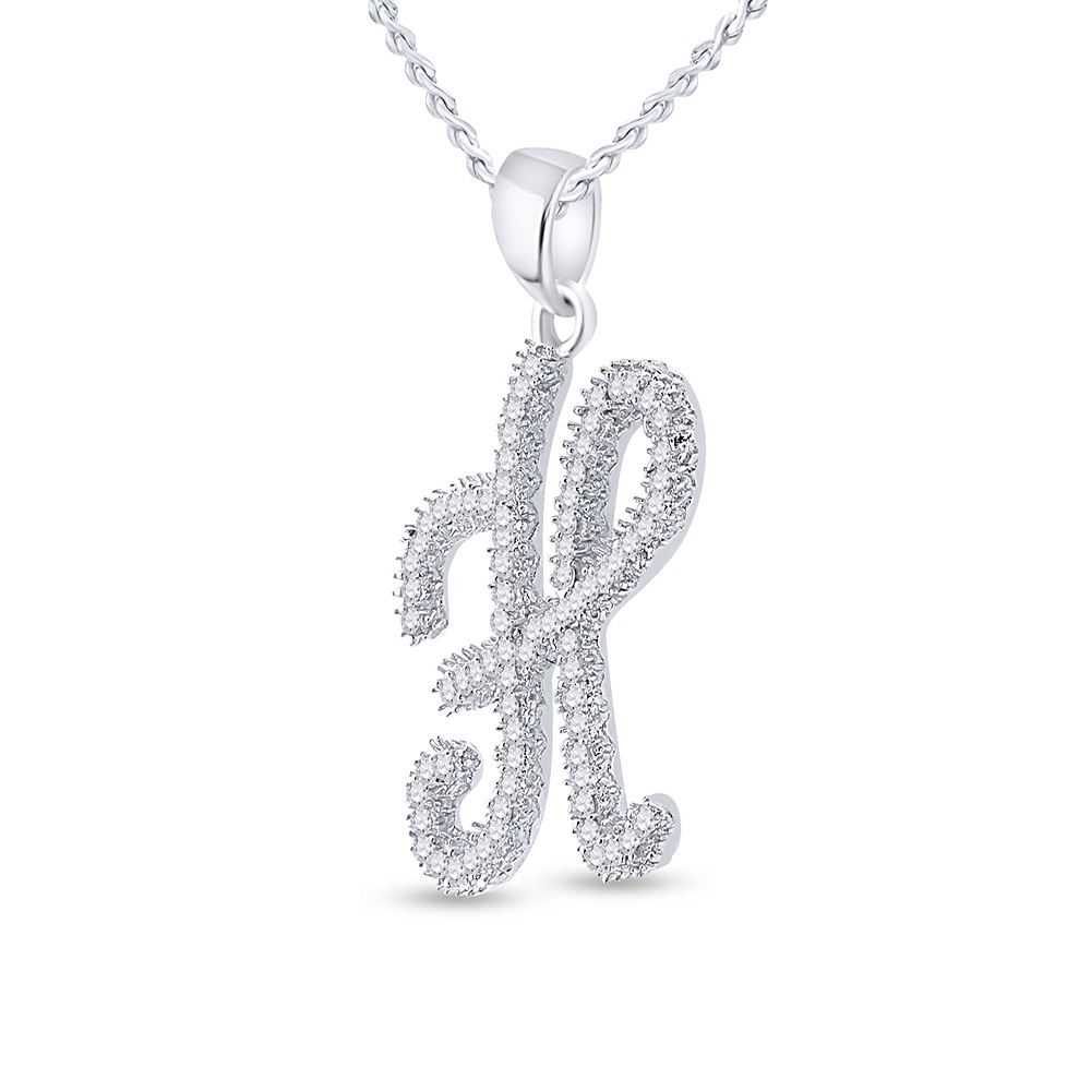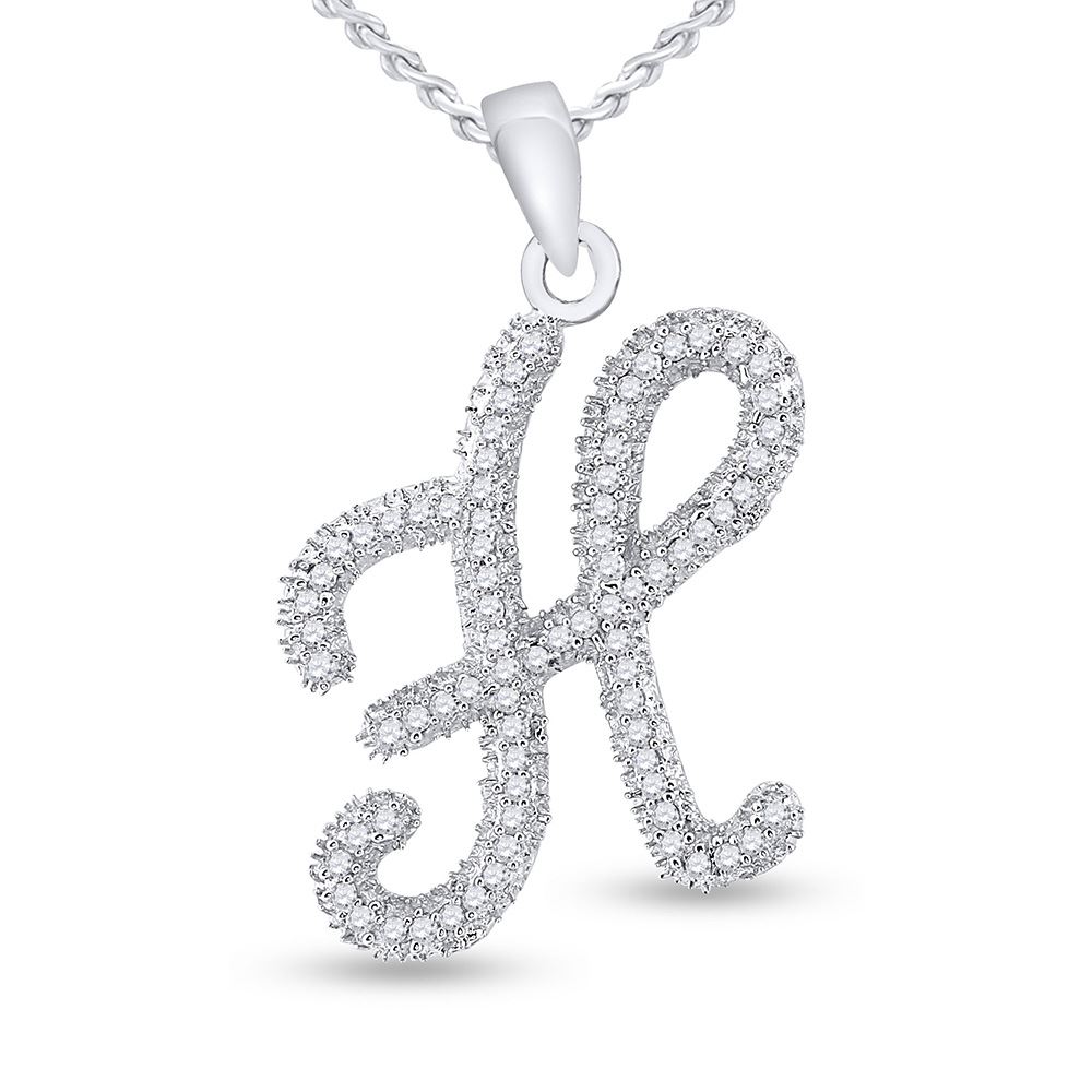 10kt White Gold Womens Round Diamond Cursive Letter H Pendant 1/5 Cttw