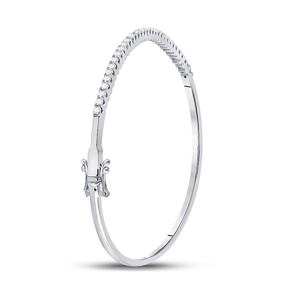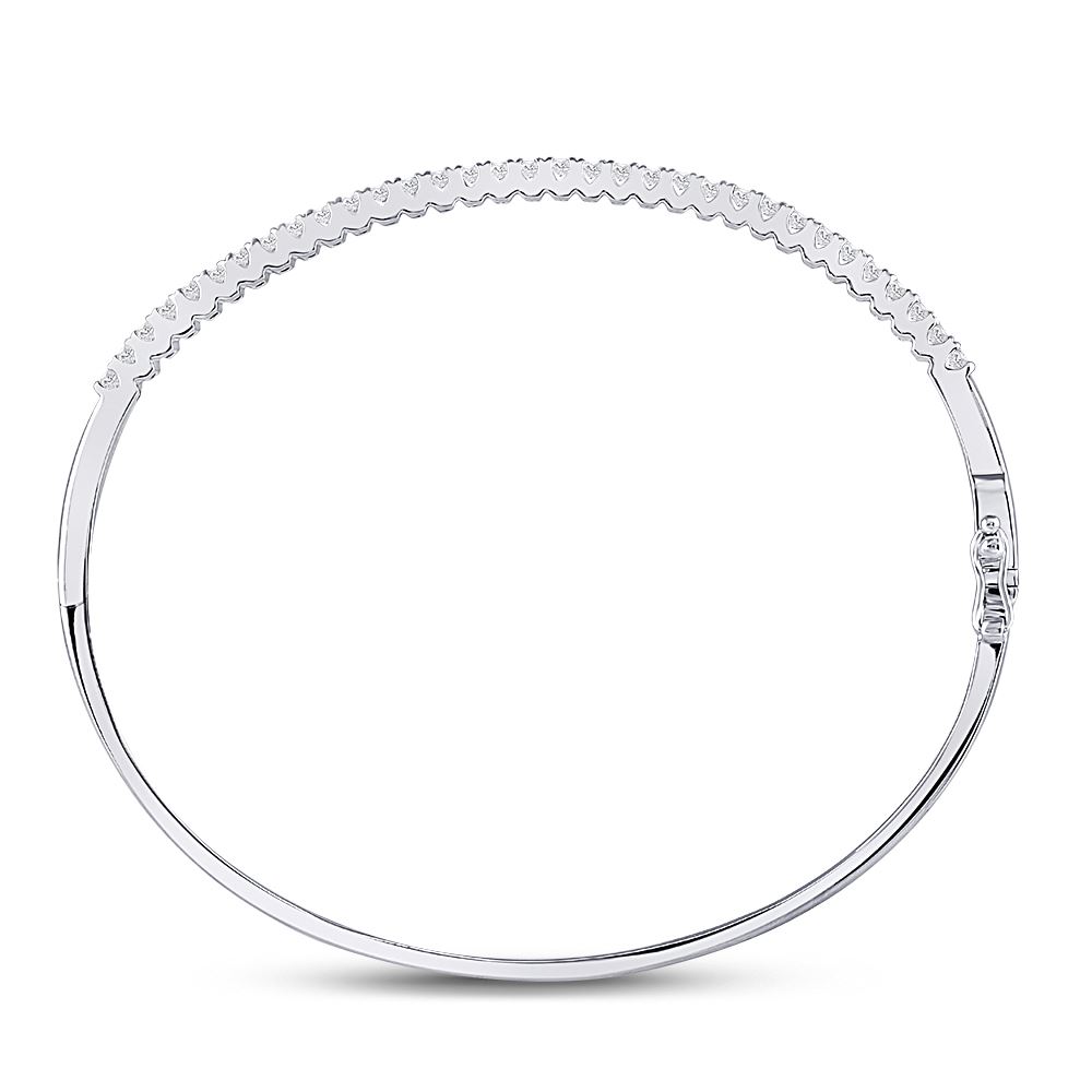 14kt White Gold Womens Round Diamond Curved Bangle Bracelet 1 Cttw