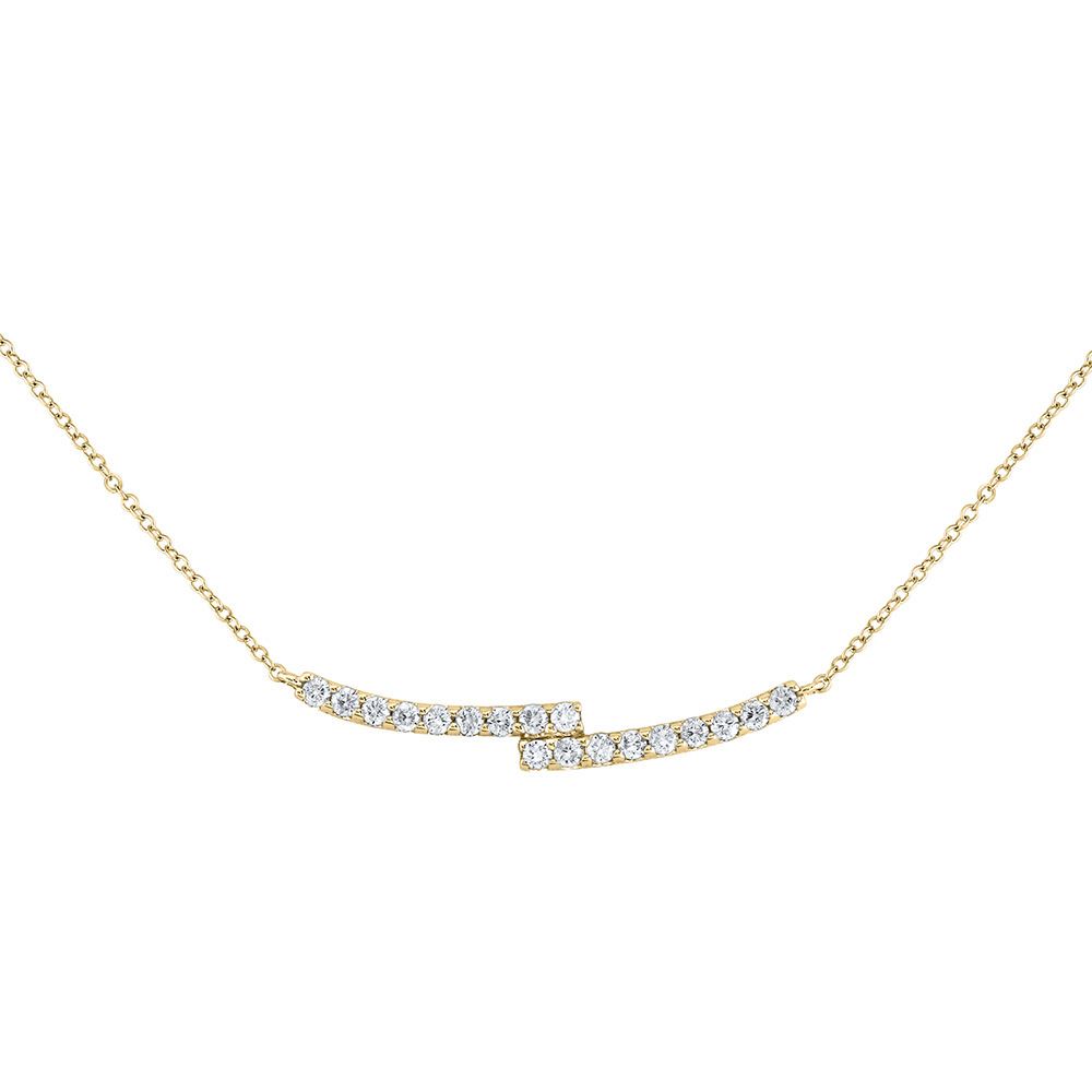 14kt Yellow Gold Womens Round Diamond Curved Bypass Bar Necklace 1/2 Cttw