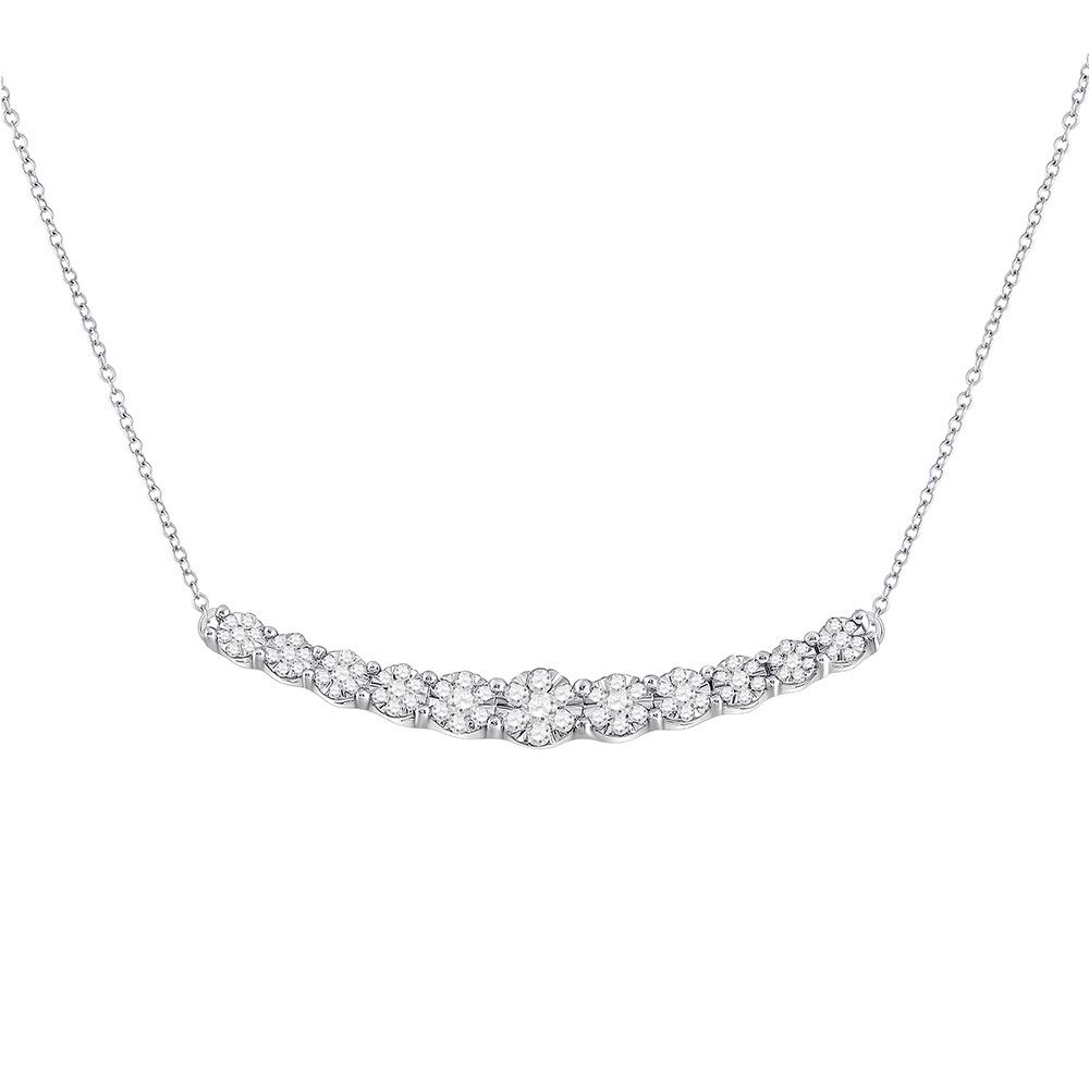 14kt White Gold Womens Round Diamond Curved Graduated Bar Necklace 1/2 Cttw