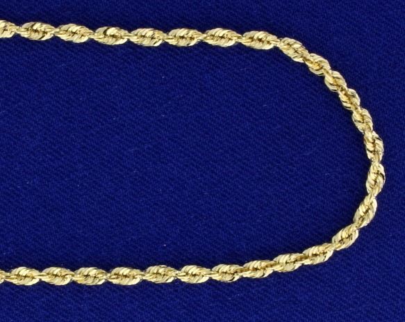 In 14k yellow gold. 2.2mm thick with lobster clasp. Diamond cut for lots of brilliance. 2.3g.