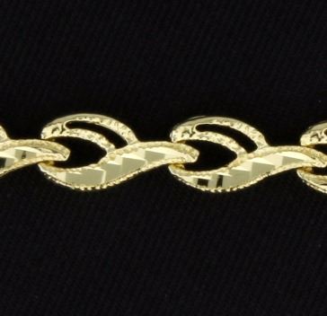 In 14k yellow gold. The bracelet is 7 1/4 inches long with diamond etching throughout, very beautifully designed bracelet. Has a safety clasp. 6.7g