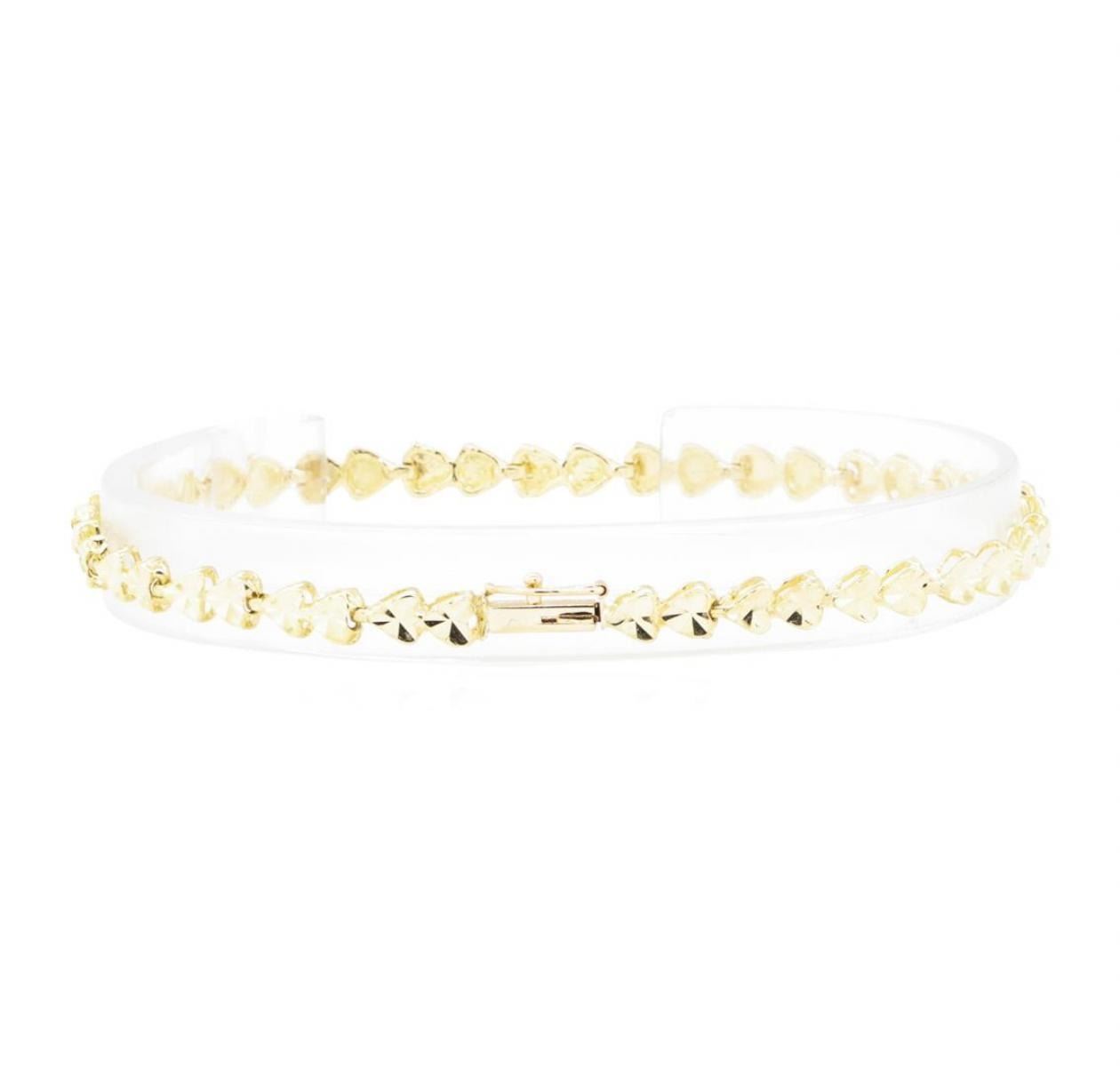 One diamond-cut heart motif bracelet measuring approximately seven and a half inches in length and 4.5mm wide featuring: 14K yellow gold weighing 6.2 grams.