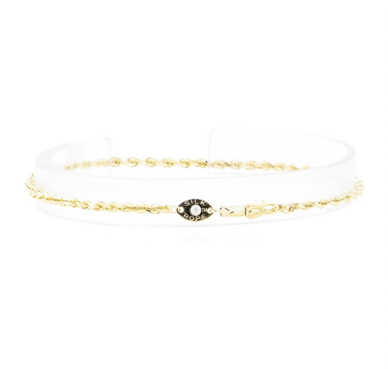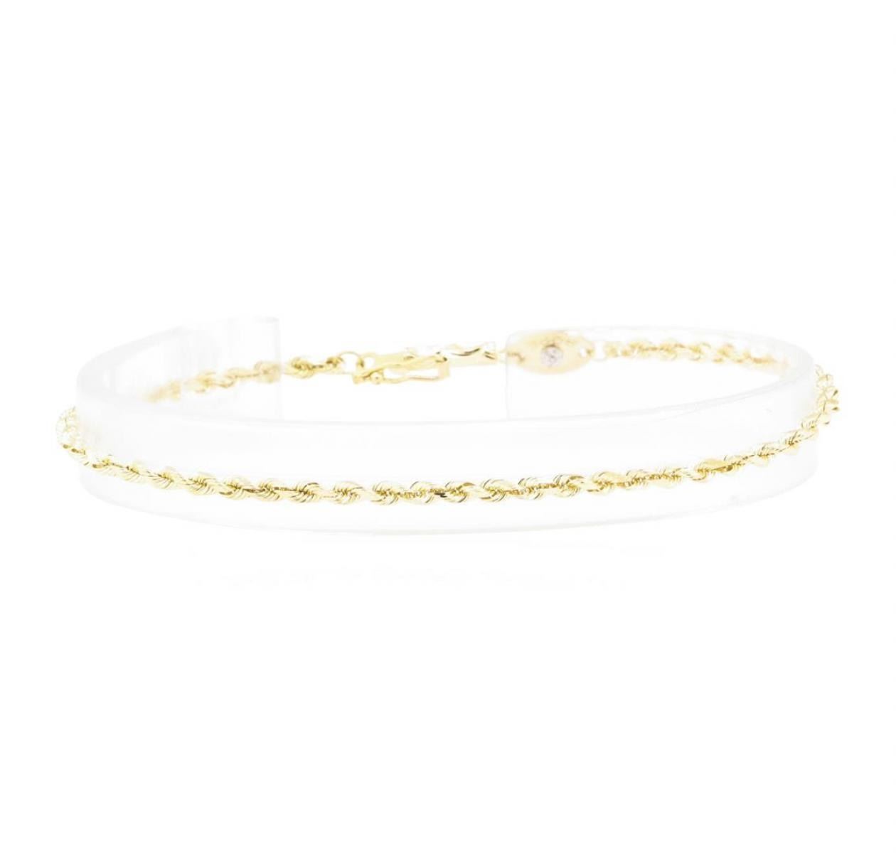 One diamond cut rope bracelet measuring approximately seven inches in length and 2mm in width featuring: 14KT yellow gold weighing 2.7 grams.