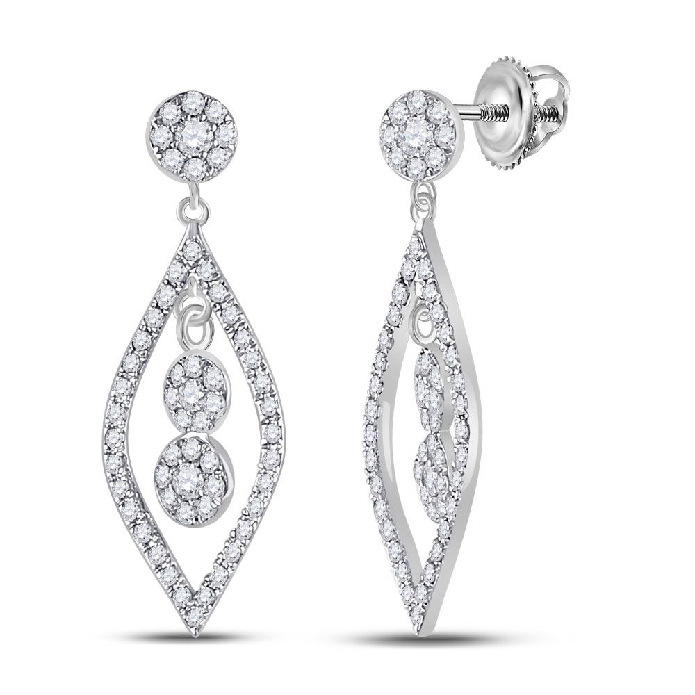 10kt White Gold Womens Round Diamond Dangle Earrings 1/2 Cttw