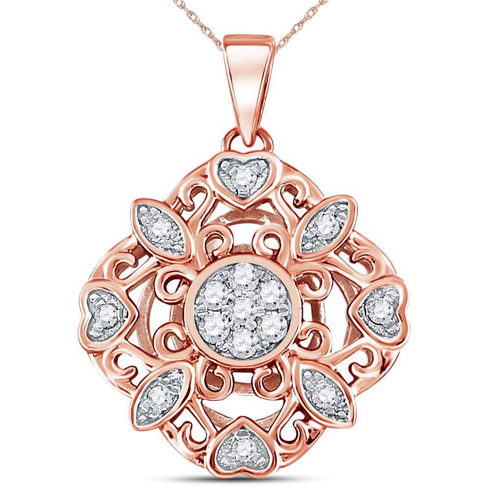 REF-30W9H - SKU: GD119616 ---- Diamond Diagonal Square Heart Cluster Pendant 1/4 Cttw 14kt Rose Gold