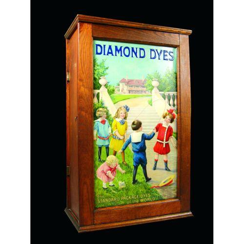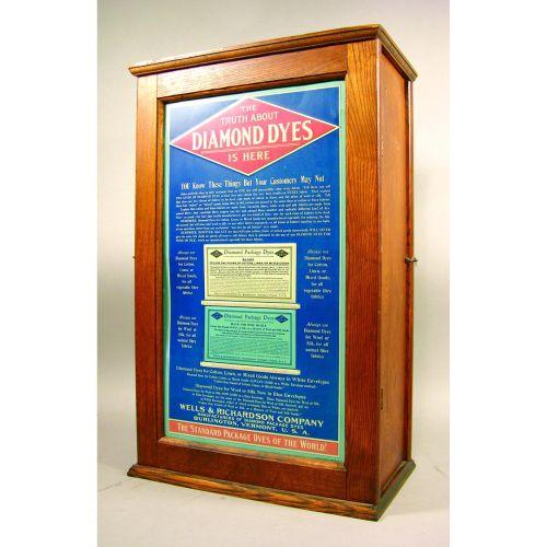 Diamond Die Cabinet. Embossed Tin Litho front. Comes with product. Excellent condition. 15 1/4 x 24 1/2 x 9 inches.
