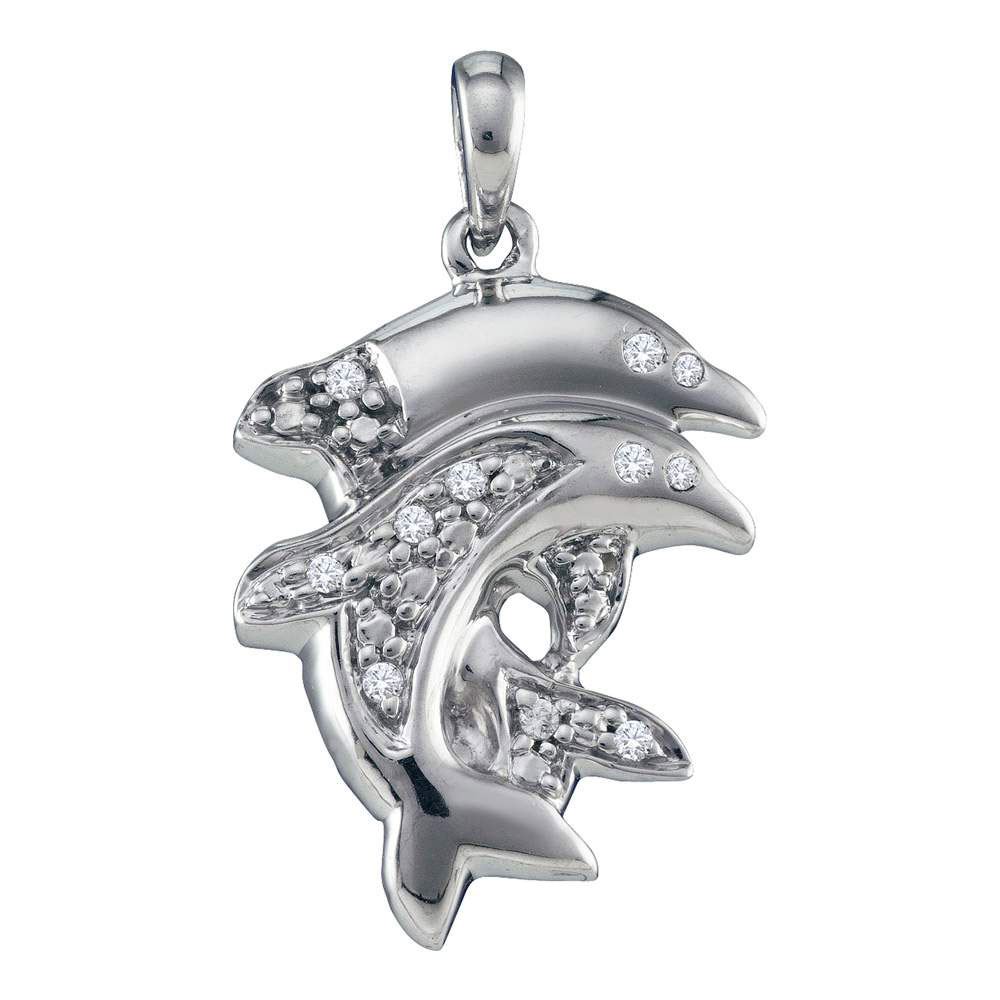 Sterling Silver Womens Round Diamond Dolphin Animal Pendant 1/6 Cttw