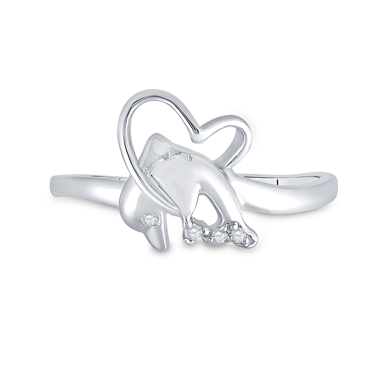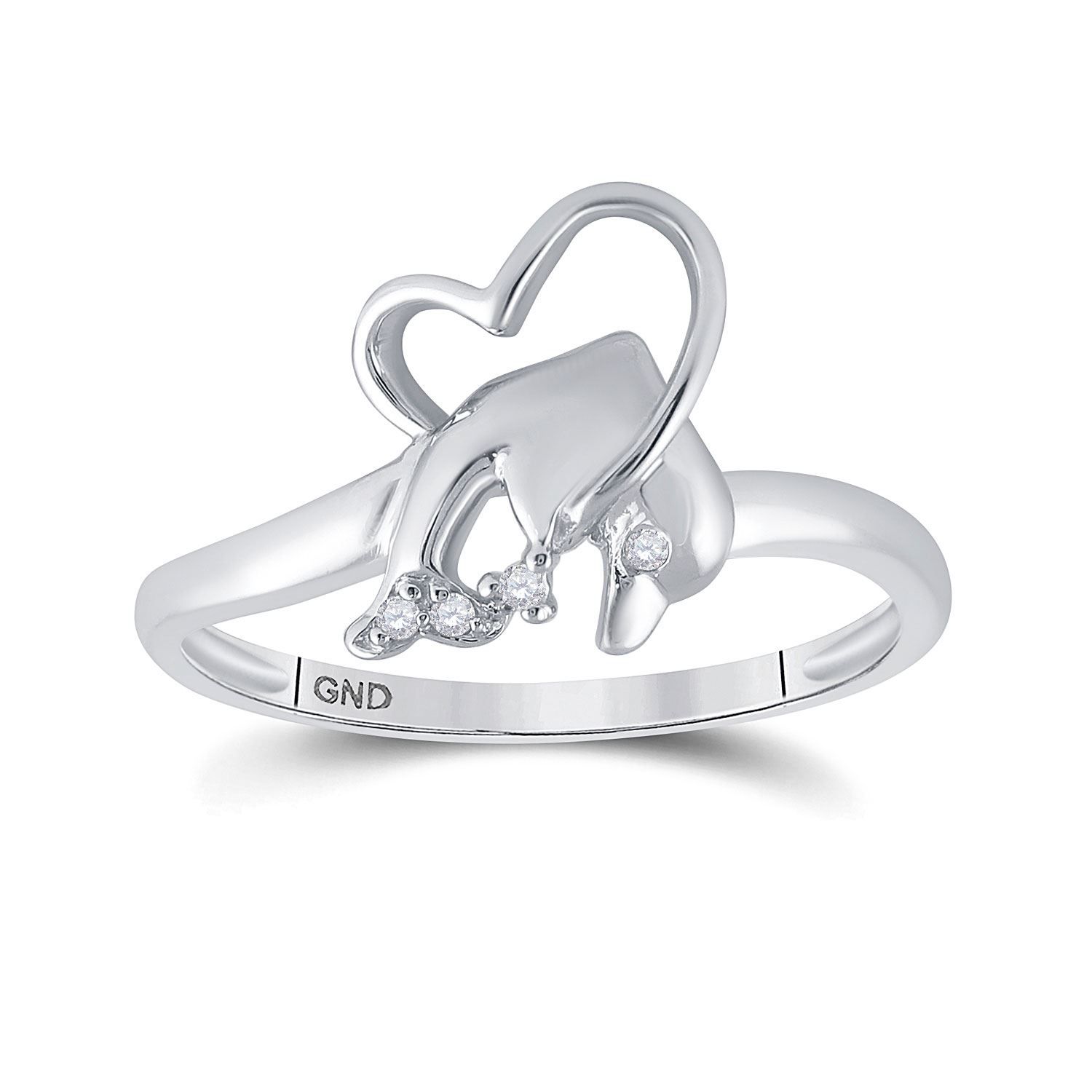 10kt White Gold Womens Round Diamond Dolphin Ring .02 Cttw