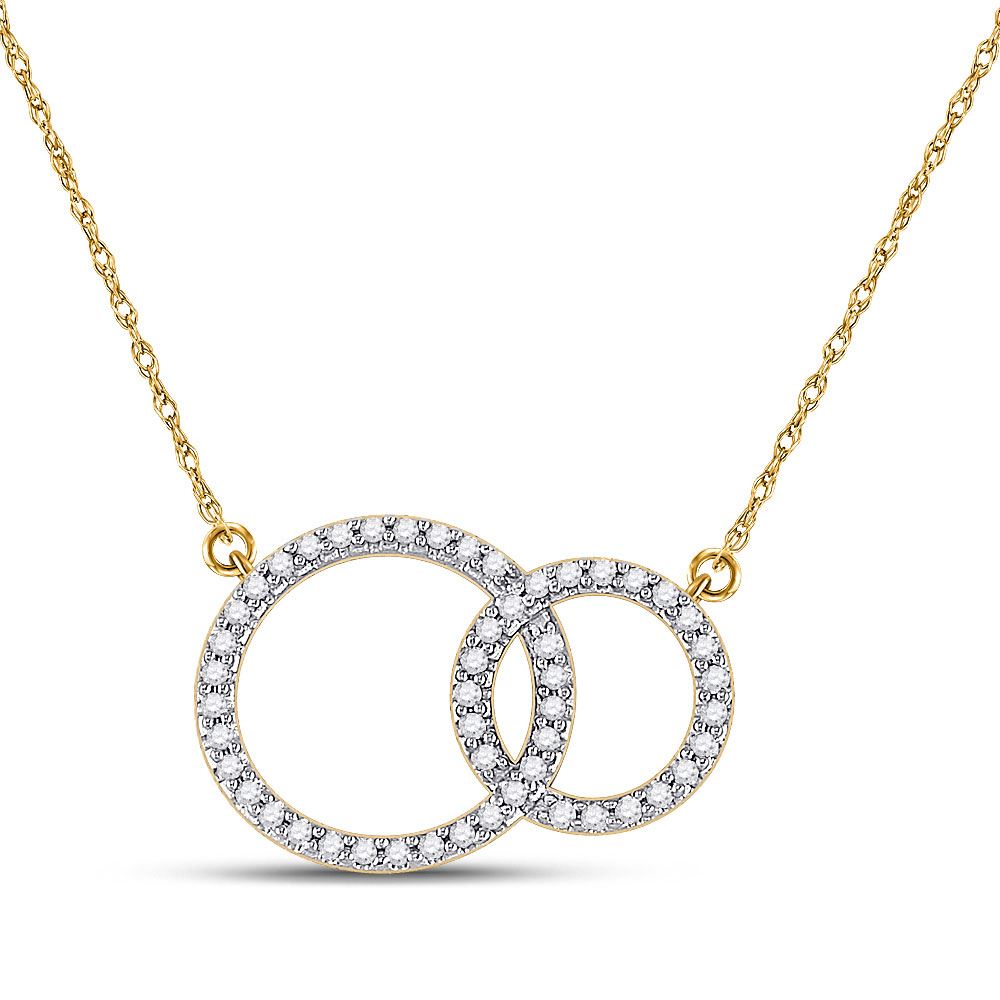 10kt Yellow Gold Womens Round Diamond Double Circle Necklace 1/6 Cttw