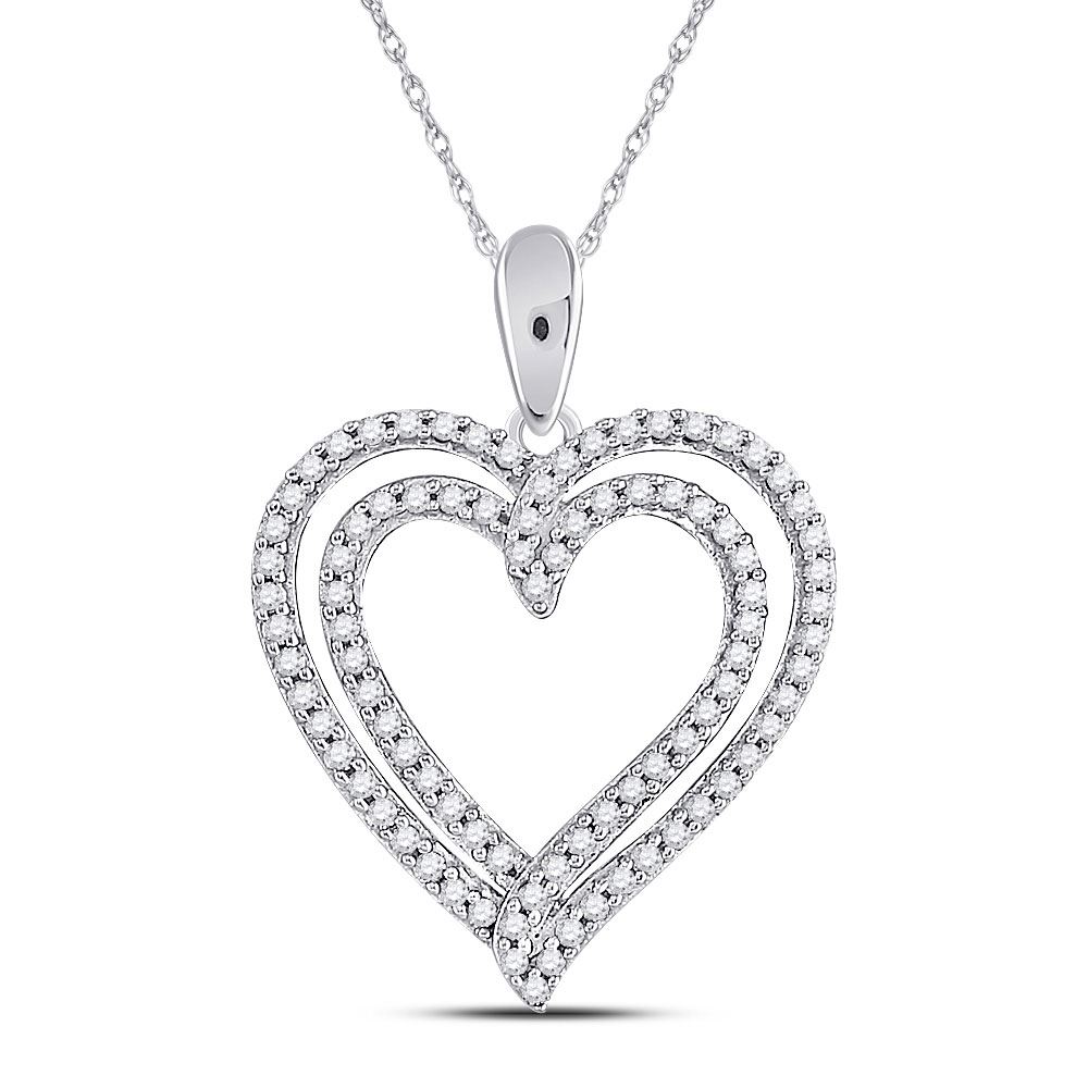 REF-33N6F - SKU: GD108567 ---- Diamond Double Frame Heart Pendant 1/2 Cttw 10kt White Gold