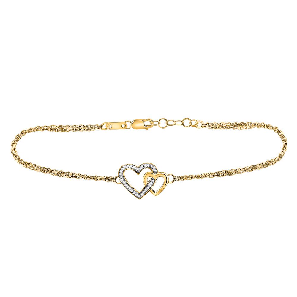 REF-16W4H - SKU: GD97121 ---- Diamond Double Heart Bracelet 1/10 Cttw 10kt Yellow Gold