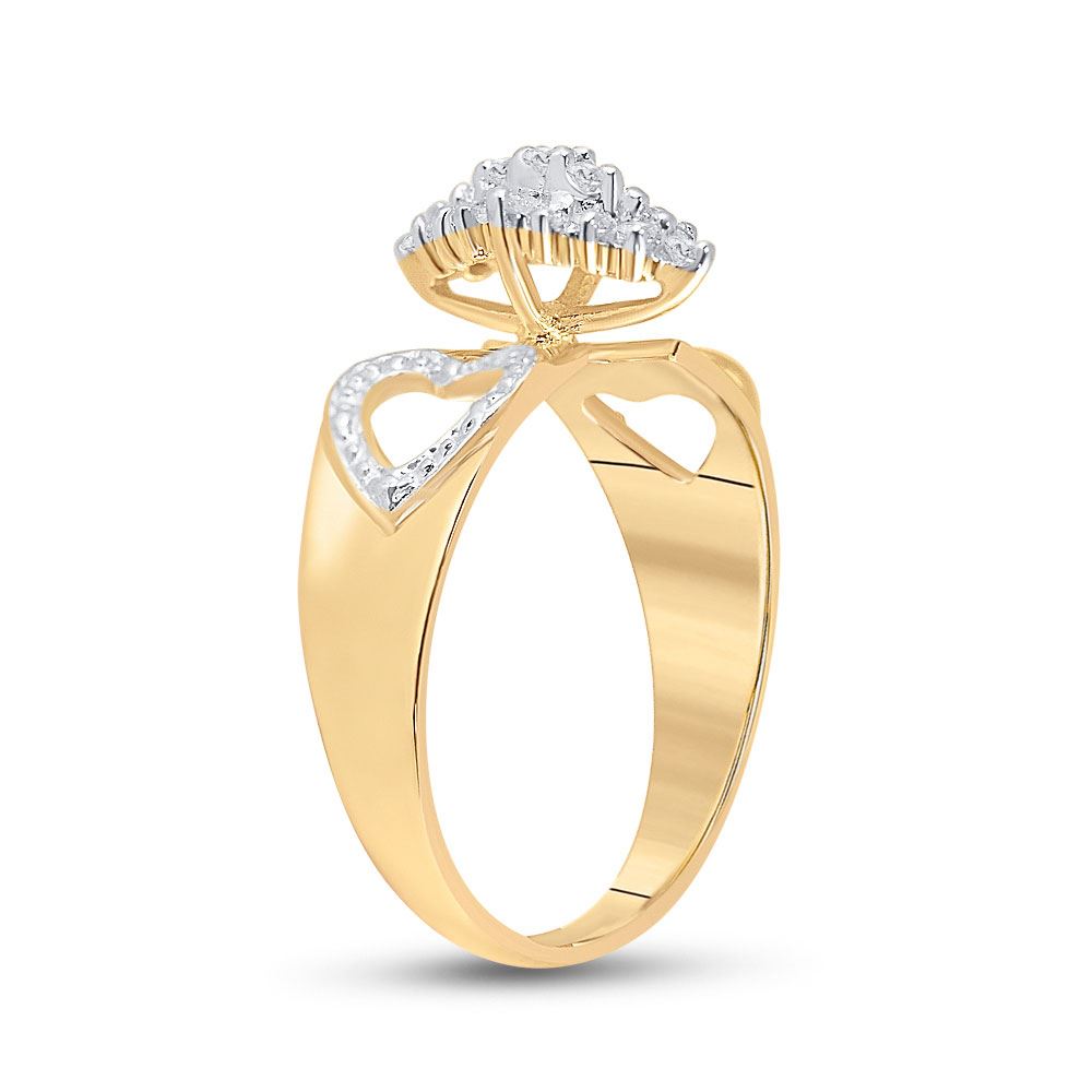 10kt Yellow Gold Womens Round Diamond Double Heart Cluster Ring 1/8 Cttw