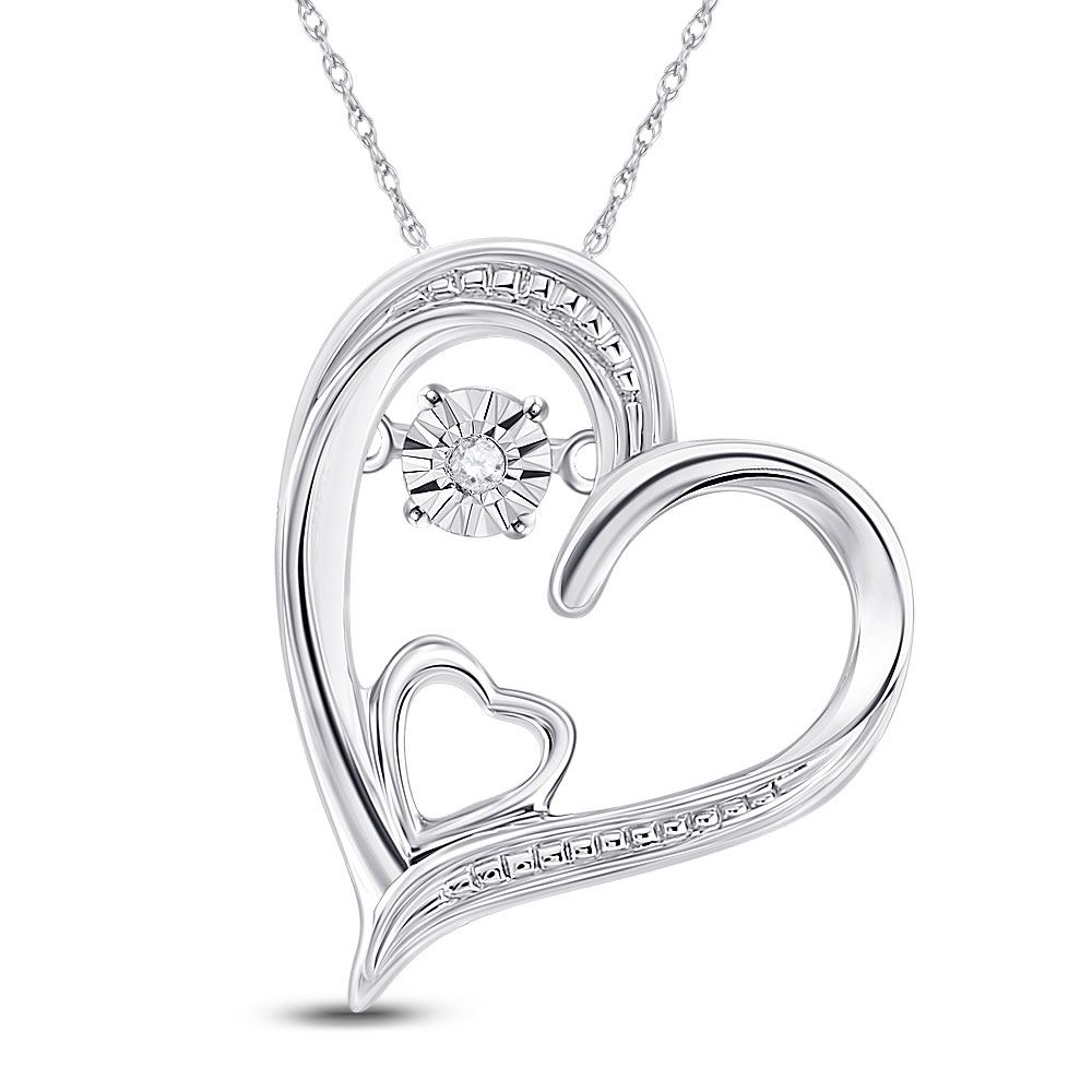 Sterling Silver Womens Round Diamond Double Heart Moving Twinkle Pendant .01 Cttw