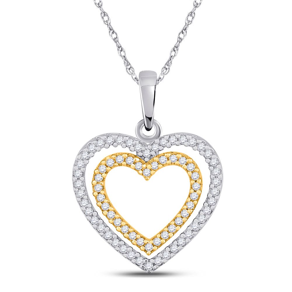 10kt Two-tone Gold Womens Round Diamond Double Heart Pendant 1/4 Cttw