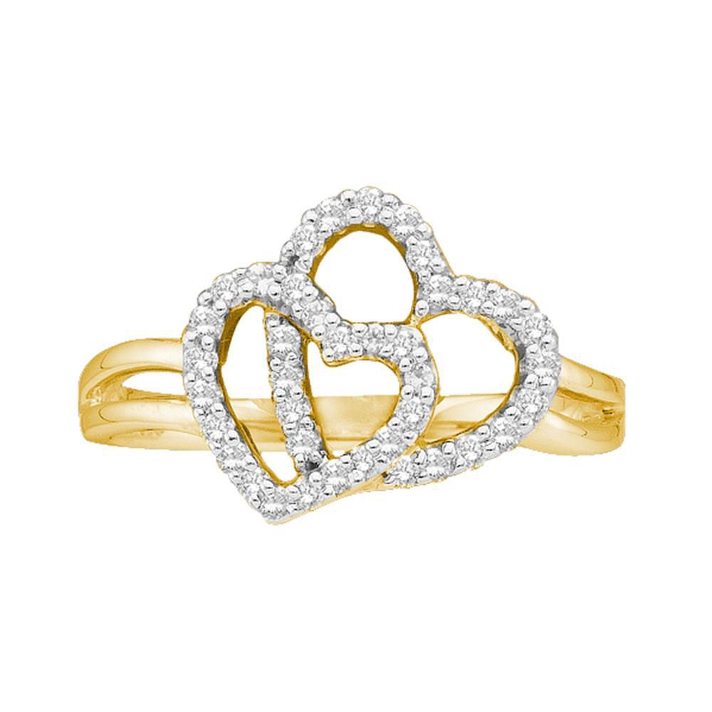 REF-40G0M - SKU: GD28158 ---- Diamond Double Heart Ring 1/4 Cttw 14kt Yellow Gold